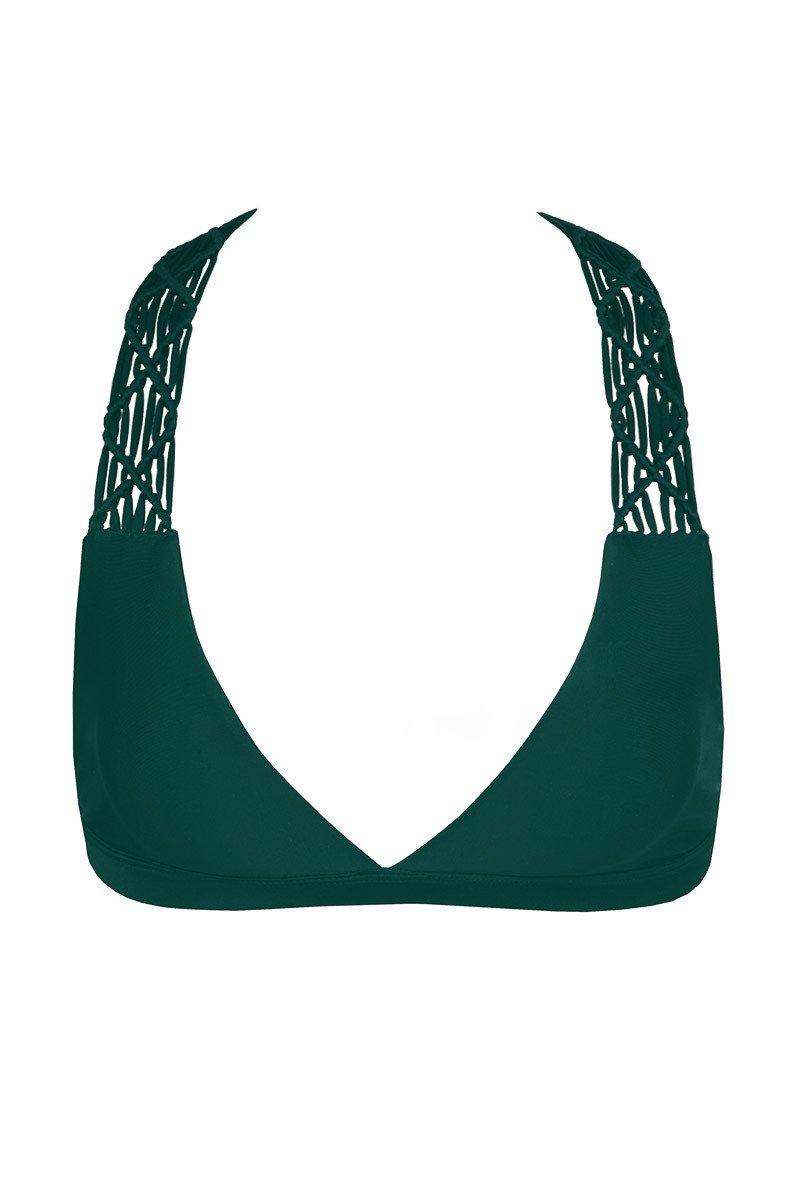 Women's Tuamotu Macrame T-back Bikini Top - Kelp Green