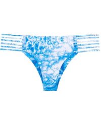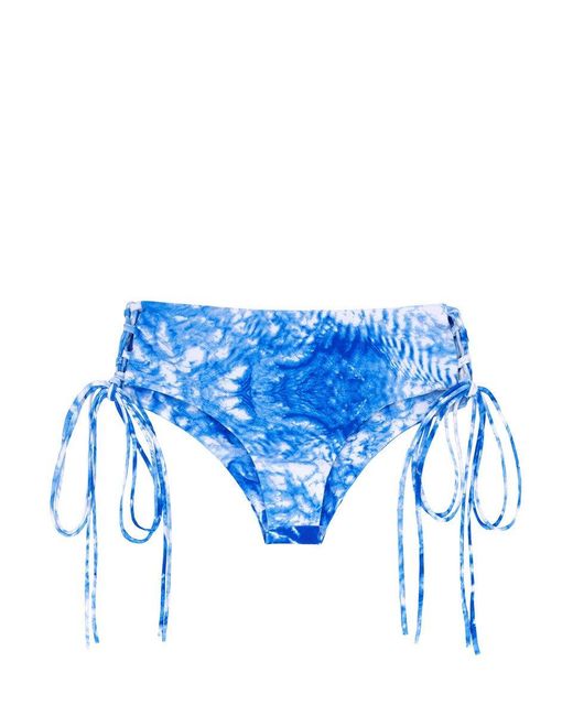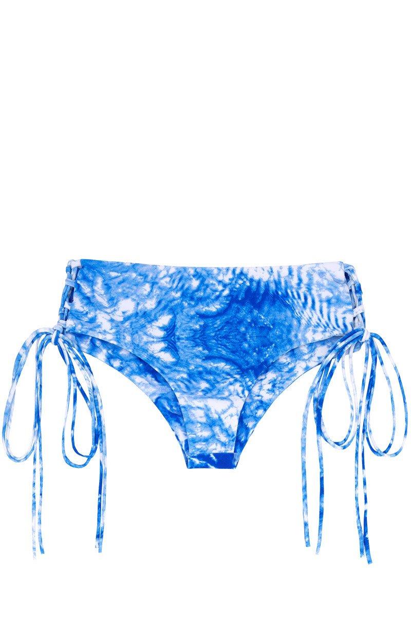 Women's Vanuatu Lace-up Sides Cheeky Bikini Bottom - Whitewater Fiji Blue Tie Dye Print