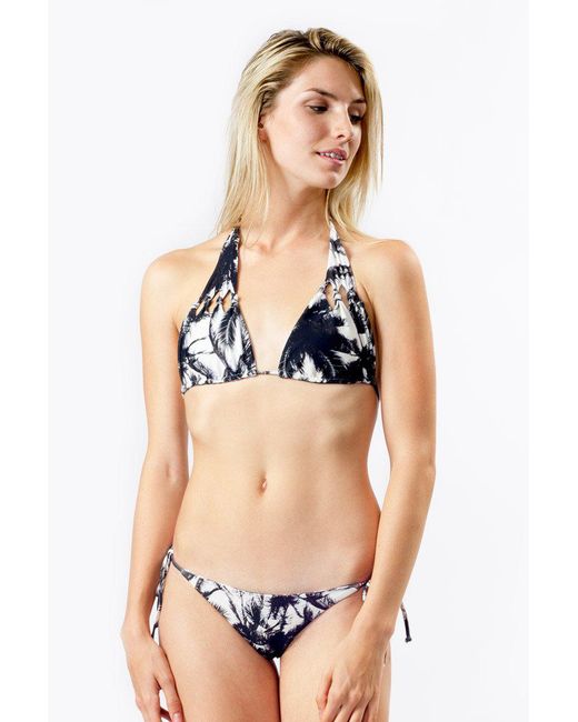 Hilo Cut Out Knot Bikini Top - Polynesian Palm Print