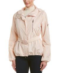 Please note: Size selections are specific to this brand. For conversions, please refer to the size chart. Color/pattern: beige Approximately 24in from shoulder to hem Measurement was taken from a size 0 and may vary slightly by size Design details: hooded back, zippered chest pocket, dual side seam pockets, raglan sleeves with logo detailing and elasticized cuffs, belted waist, drawstring hem Zipper and snap closures Lightweight Body: 100% polyester Lining: 100% silk Dry clean only Made in Italy Our products are 100% genuine. In some cases we purchase merchandise from trusted independent suppliers and not directly from the brand owner. Colour: pink