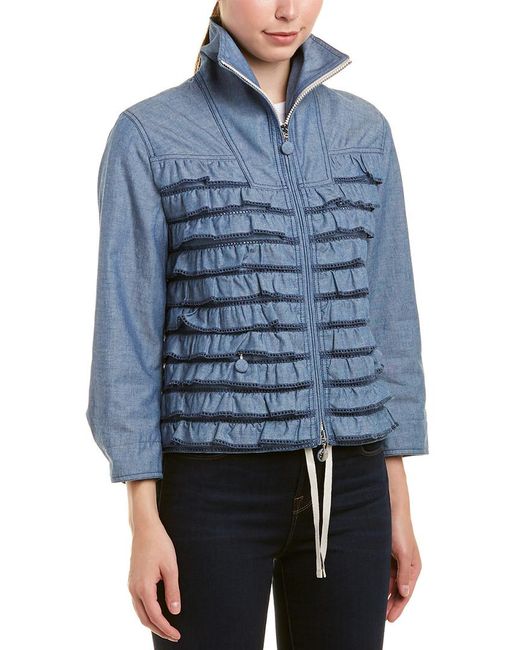 Please note: Size selections are specific to this brand. For conversions, please refer to the size chart. Color/pattern: light blue Approximately 21in from shoulder to hem Measurement was taken from a size 0 and may vary slightly by size Design details: funnel neck, embroidered ruffle design, two front zippered pockets, inner drawstring at hem Zipper closure Body: 100% cotton Sleeve Lining: 100% polyamide Embroidery: 88% cotton, 12% polyester Dry clean only Our products are 100% genuine. In some cases we purchase merchandise from trusted independent suppliers and not directly from the brand owner. Colour: blue