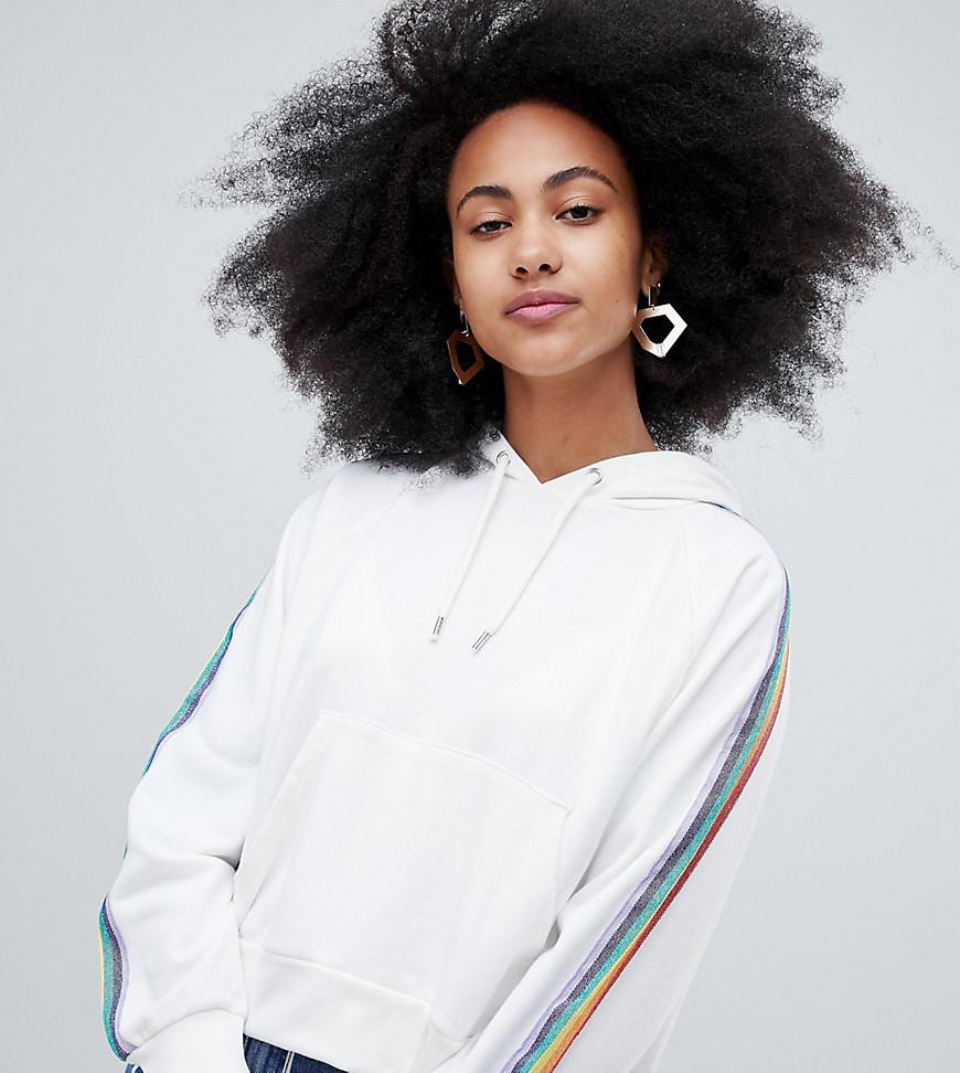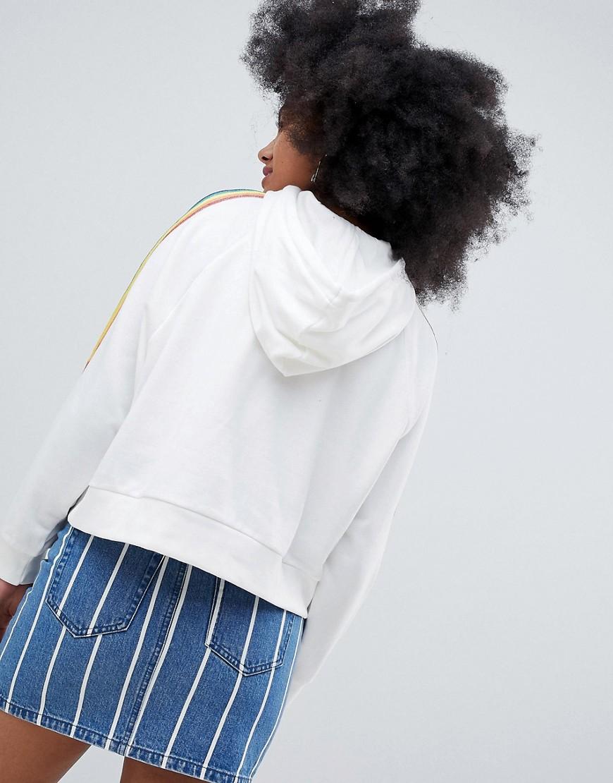 Go to ASOSHoodie by Monki, For casual layering, Drawstring hood, Rainbow stripes down the sleeves, Cute, right? Pouch pocket, Relaxed fit, Loose but not oversized, Part of the Eco Edit, Saving the planet, one hoodie at a time. If you're all for personality and expression then Monki is the one for you. Known for its street-style-meets-Scandi-chic design and super-fun story-based store concepts, Monki grabs bold, brash colours and a whole lot of prints and patterns before playing them out across a collection of 90s crop tops, Bodycon dresses and skinny jeans. Cotton/ jean/ polyester/ print. Colour: white