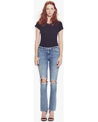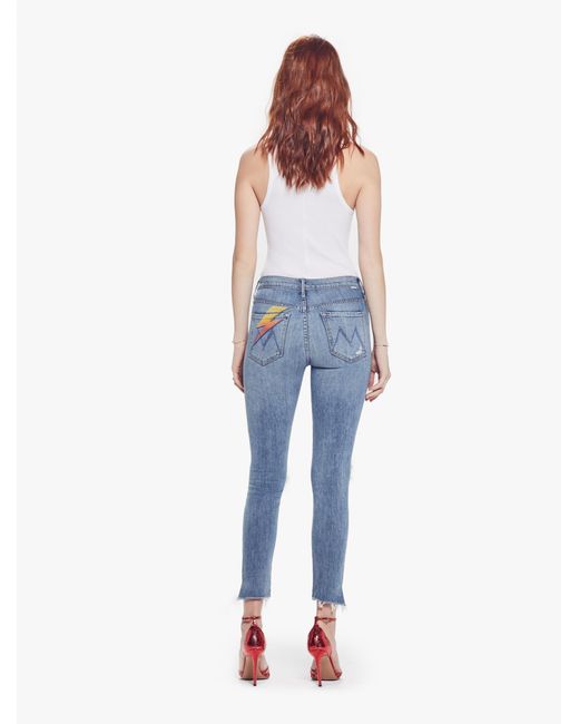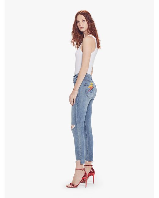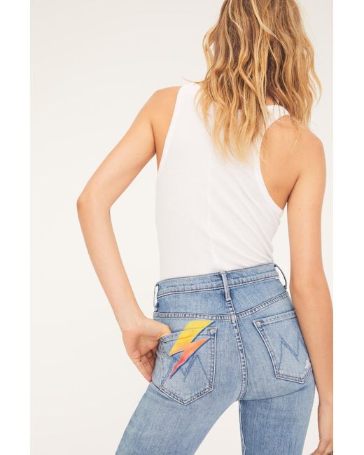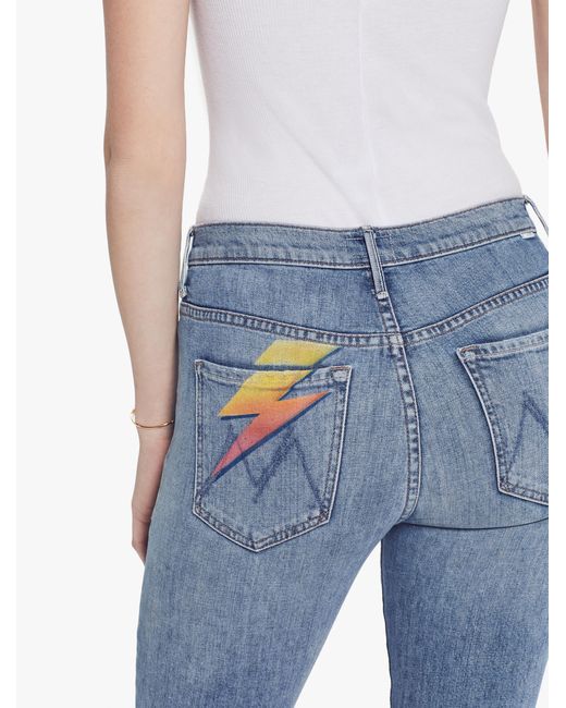 Description. Turn around. Mother's sporting a lightning bolt on her back pocket. Blown out knees and frayed hem for an extra rough around the edges look. Made in los angeles. Style no. 1451-624-hsk. Composition. 98% cotton, 2% elasthane. Details. 10" rise, 27 1/2" inseam, 10 1/4" leg opening. Model is 5'11'' wears size 26 or small bottoms and size small shirts. Size (us). Find your fit. Measurements are standard, but bodies? Not so much. Email customerservice@motherdenim. Com to get more specific. Xs. S. m. L. Chest. 31 - 33 in. 33 – 35 in. 35 – 37 in. 37 – 39 in. Waist. 24 - 26 in. 26 – 28 in. 28 – 30 in. 30 – 32 in. Hip. 331⁄2 – 351⁄2 in. 351⁄2 – 371⁄2 in. 371⁄2 – 391⁄2 in. 391⁄2 – 411⁄2 in. Pant. 0 – 2. 4 - 6. 8 - 10. 12 - 14. Colour: blue