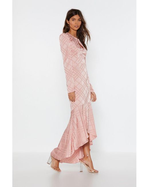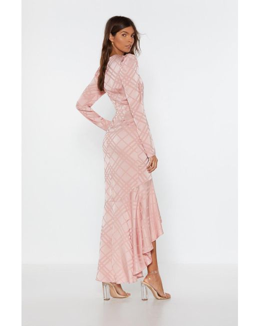 Women's Pink Not Today Satin Ruffle Midi Dress