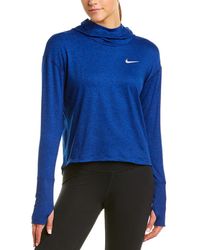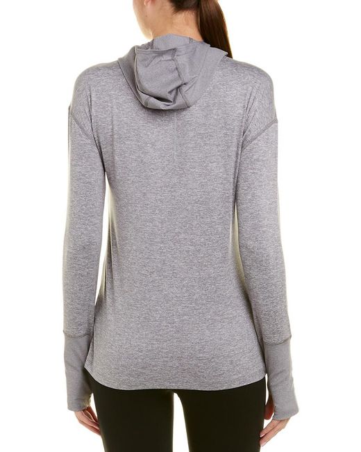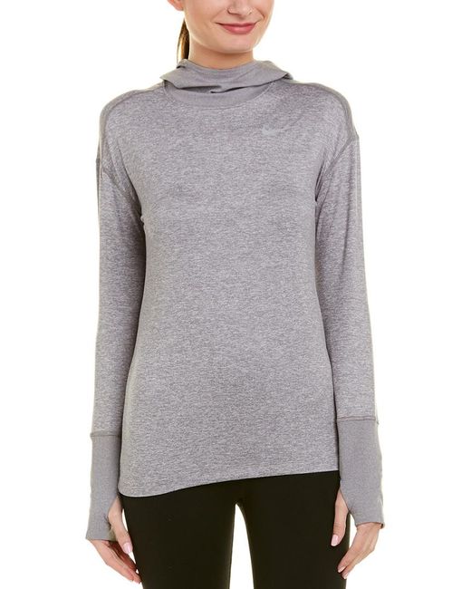 Color/pattern: gunsmoke heather. Approximately 26in from shoulder to hem. Measurement was taken from a size small and may vary slightly by size. Design details: Dri-Fit technology, hood at back, ribbed trim, thumbholes at cuffs. Body: 88% polyester, 12% spandex. Rib: 89% polyester, 11% spandex. Machine wash.