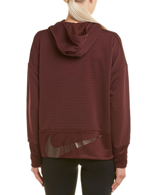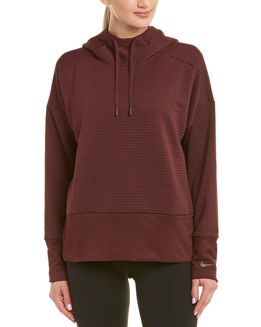 Color/pattern: burgundy/crush. Approximately 23.5in from shoulder to hem. Measurement was taken from a size small and may vary slightly by size. Design details: hooded back, dropped-shoulder sleeves. 100% polyester. Machine wash.