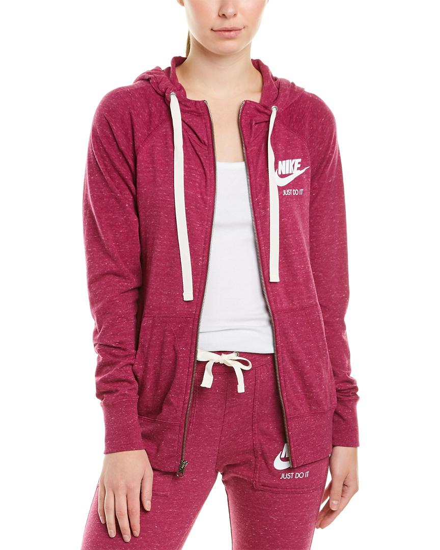 Color/pattern: magenta Approximately 25in from shoulder to hem Measurement was taken from a size x-small and may vary slightly by size Design details: drawstring hood, raglan sleeves, graphic logo detail, divided kangaroo pocket Zipper closure 60% certified organically grown cotton, 40% recycled polyester Machine wash Imported. Colour: red