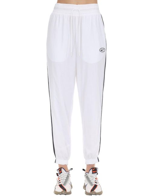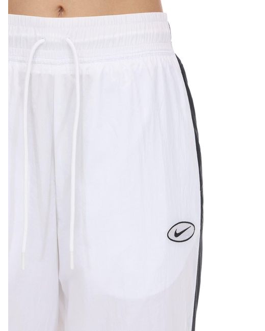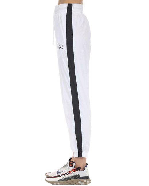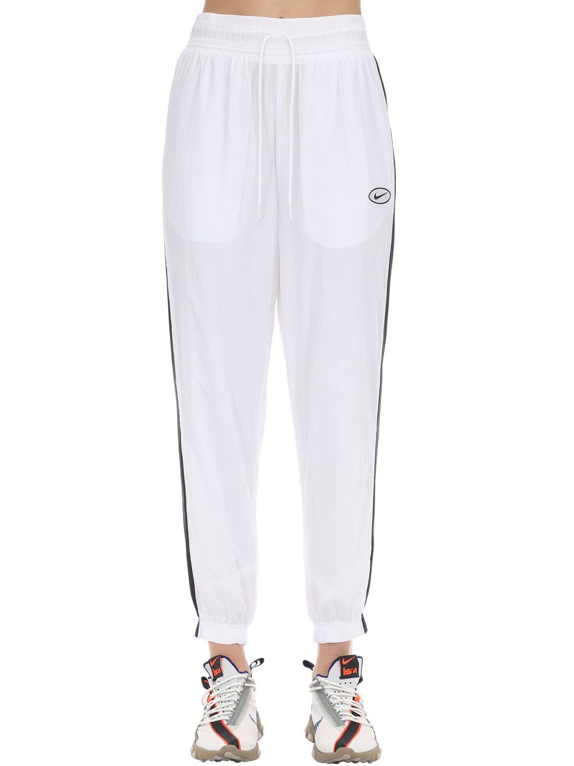 Women's White Logo Nylon Trousers W/ Side Bands