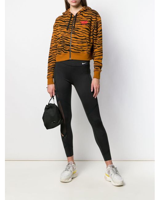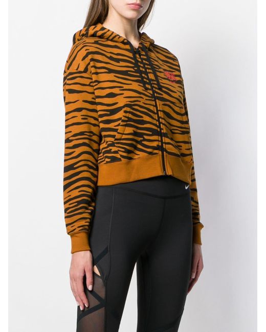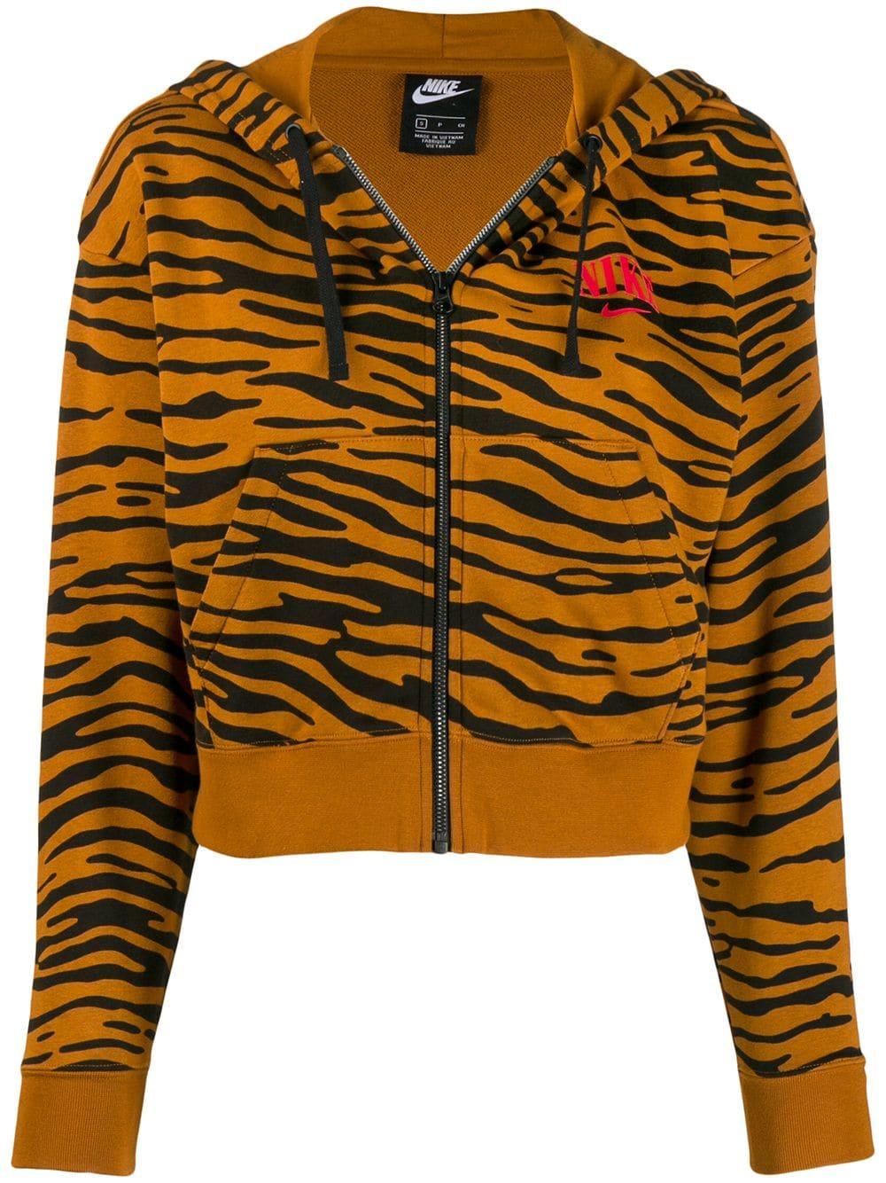 Sportswear giant Nike was founded in 1964 and named after the Greek Goddess of Victory. With a focus on progressive design and technical construction, the label is instantly recognisable thanks to the iconic swoosh logo and Just Do It slogan. This brown cotton tiger print hoodie features a drawstring hood, a front zip fastening, long sleeves, front pockets and a straight hem. Material:Cotton/Polyester. Colour: black