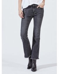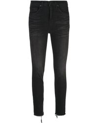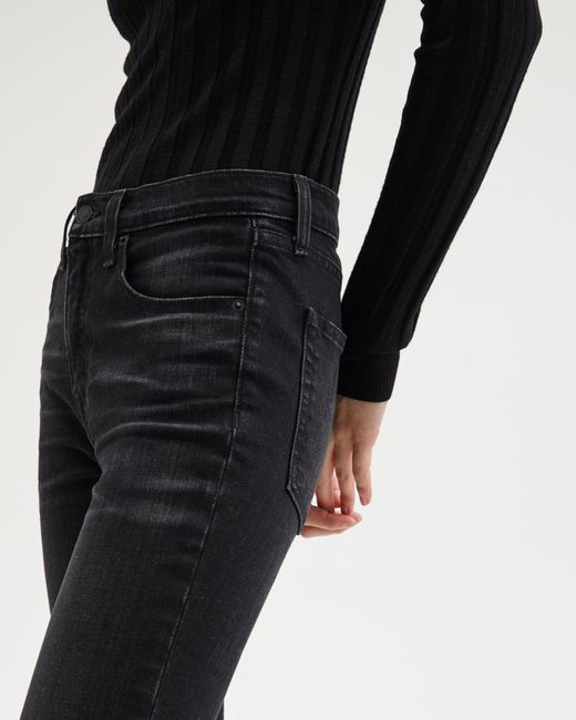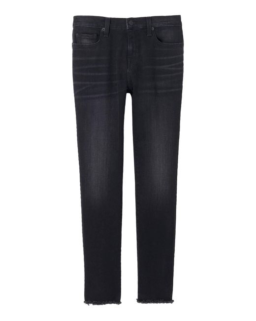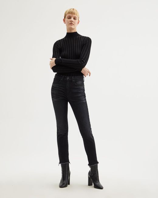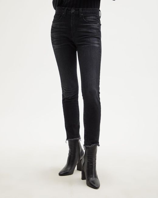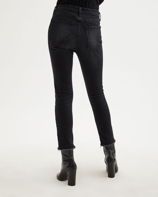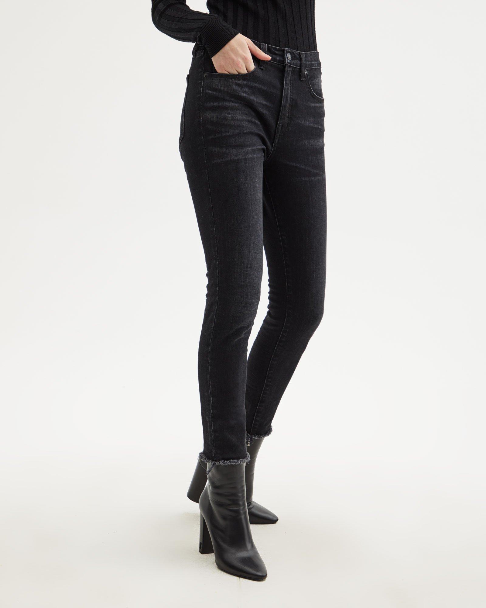 Designed for a skinny cropped fit, the High Waisted Skinny Jean features five pocket detailing, belt loops, and zip fly closure. Complete with raw edge hem. Colour: black