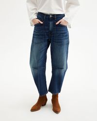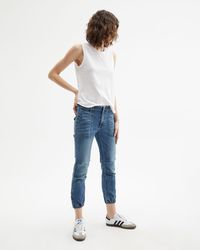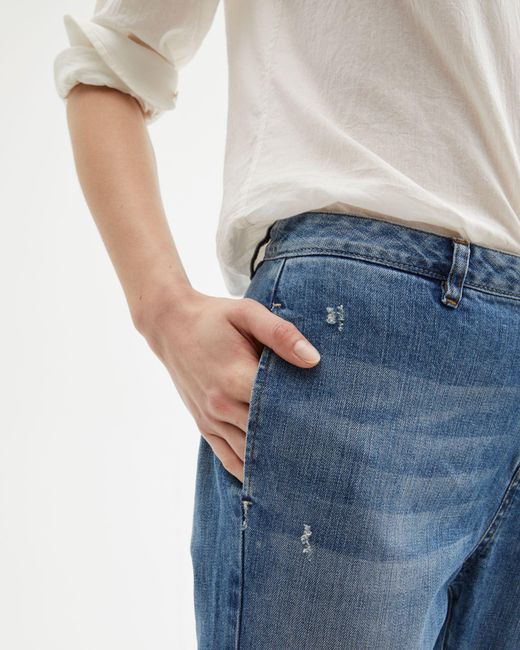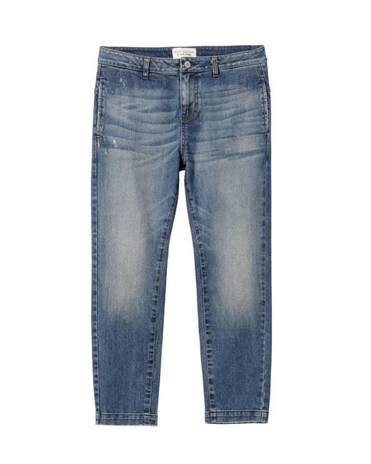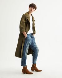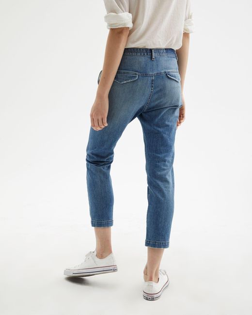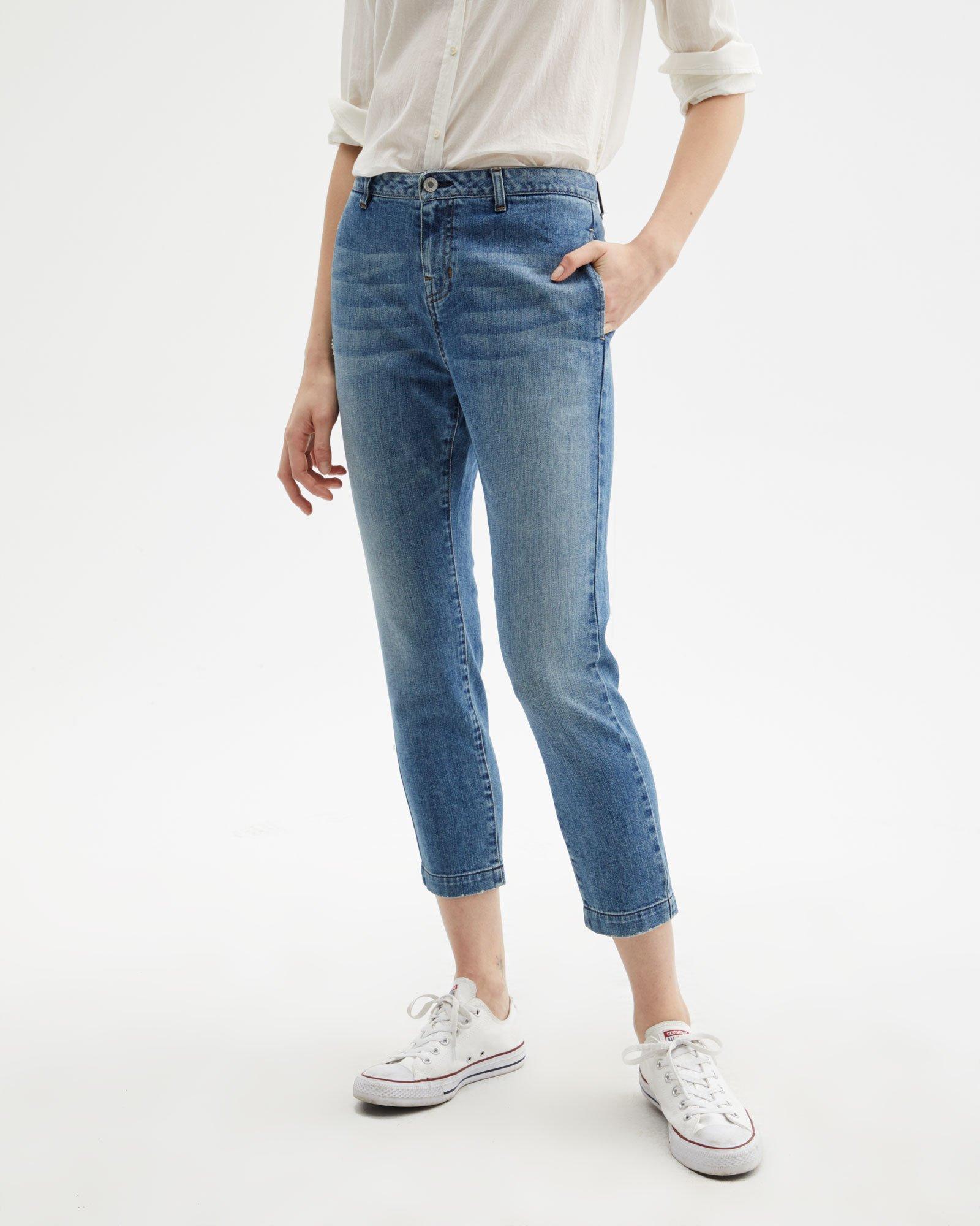 Designed for a classic silhouette, the Tel Aviv jean in washed denim is a mid-rise jean featuring Japanese stretch denim, side-seam pockets, flap back pockets and zip fly with button closure. True to size for a tight slim fit. Size up for relaxed feel. Denim has stretch for comfort. Colour: blue