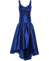 Tulle, lamé, contrasting applications, embroidered detailing, solid color, deep neckline, sleeveless, no pockets, fully lined, rear closure, zip, trapeze style. 85% Polyester, 15% Nylon, Metallic fiber.
