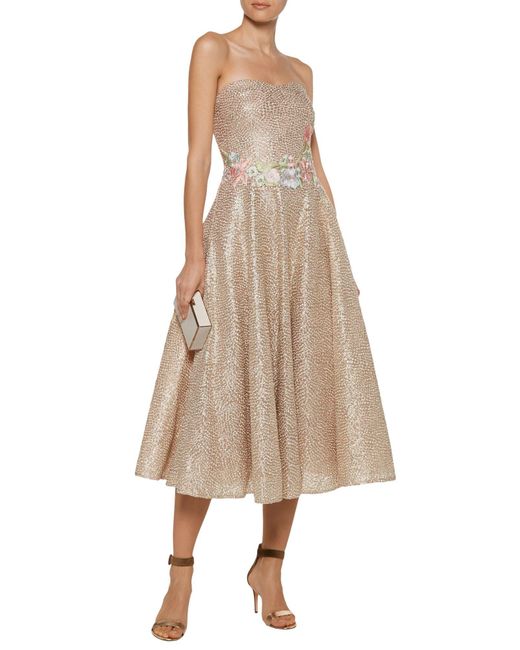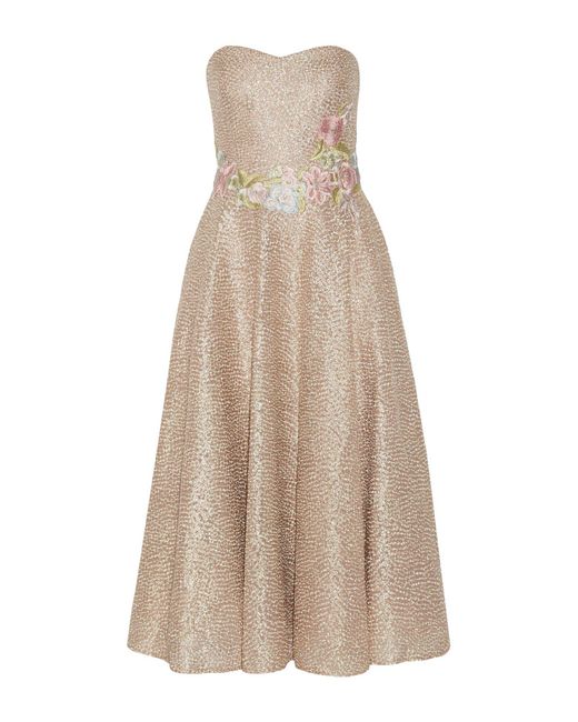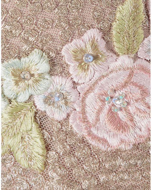 tulle, lamé, contrasting applications, embroidered detailing, solid colour, deep neckline, sleeveless, no pockets, fully lined, rear closure, zip, trapeze style. 85% Polyester, 15% Nylon, Metallic fibre. Colour: metallic