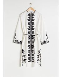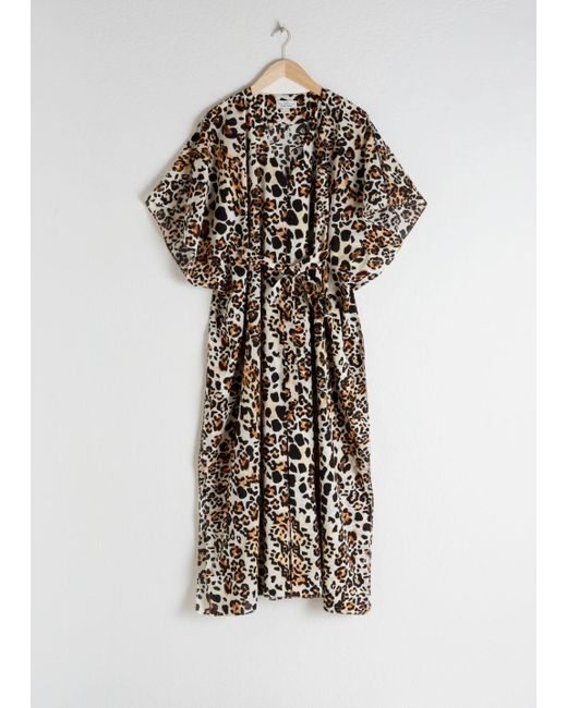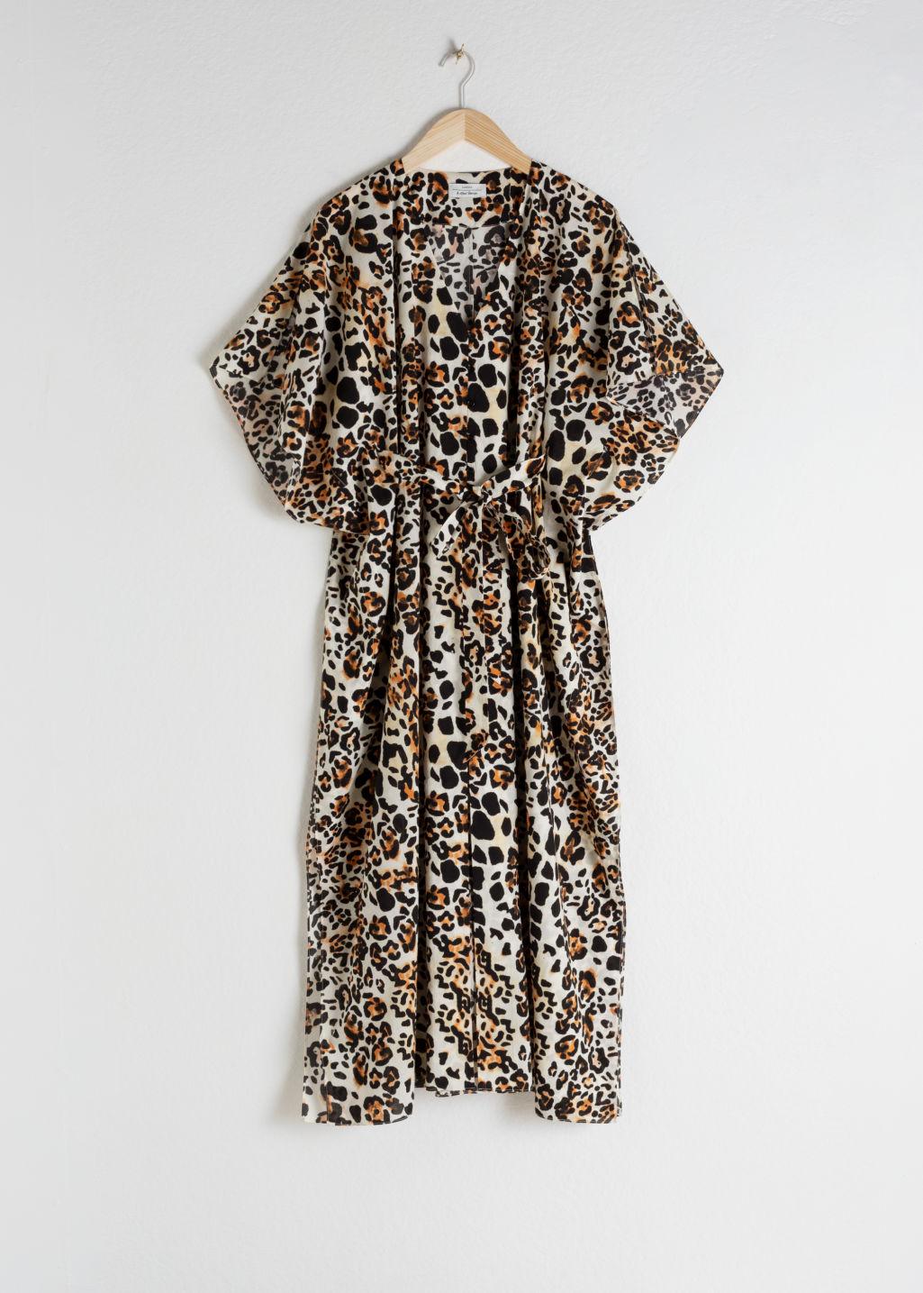 Flowing oversized kaftan in a leopard printed cotton with a waist tie, wide cut slit sleeves and a slit skirt. V-neckLength of kaftan: 136cm / 53.5" (size S) Width of chest: 160cm / 62.9" (size S) Model wears: S. Colour: white