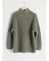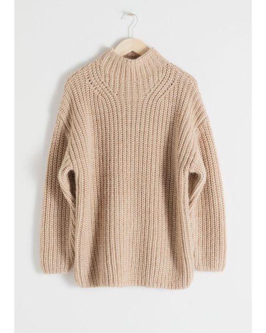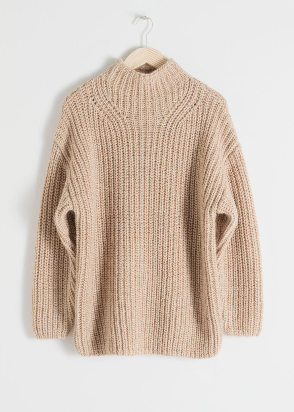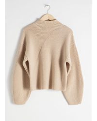 Ribbed alpaca blend jumper with a high mock neck, dropped shoulder seams, wide cut sleeves and a straight silhouette. Oversized fitTapered sleeveLength of sweater: 65.5cm / 25.8" (size S) Model wears: S. Colour: natural
