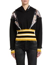 This track jacket is cut with a shoulder-baring neckline, feminizing the silhouette. A logo stamp decorates the left chest and contrast stripes on the arm finish the look off. Off-the-shoulder; Long sleeves; Zip front; Split kangaroo pocket; Polyester; Machine wash; Made in Italy; Fitted silhouette; About 20" from shoulder to hem; Model shown is 5'10" (177cm) wearing US size Small.