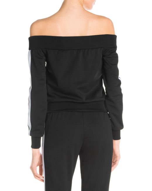 Women's Black Off-shoulder Side-stripe Track Jacket