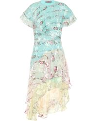 Helen Asymmetric Printed Devoré Silk-blend Satin Dress