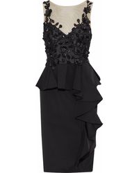 Sequins Satin trims Hook and zip fastening at side Fully lined Side slit hemline Dry clean. Imported Tulle. 100% Polyester. Colour: black