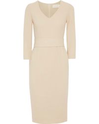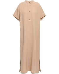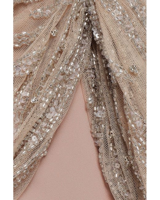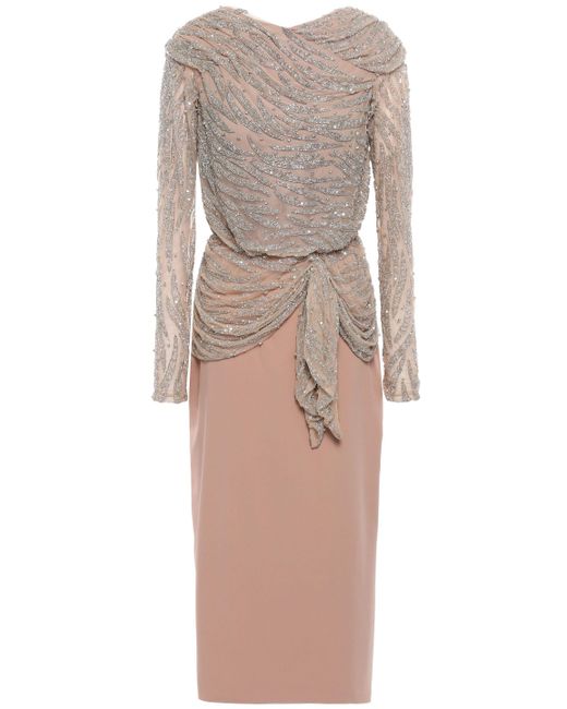 Women's Natural Ruched Embellished Tulle And Crepe Midi Dress Sand