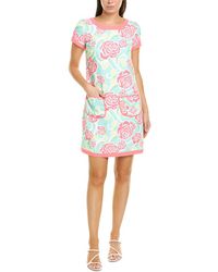 Approximately 34in from shoulder to hem. Measurement was taken from a size 2 and may vary slightly by size. Model is 5ft 10in. Design details: lace design. Center back zipper. Shell: 60% cotton, 40% nylon. Lining: 100% polyester. Machine wash.