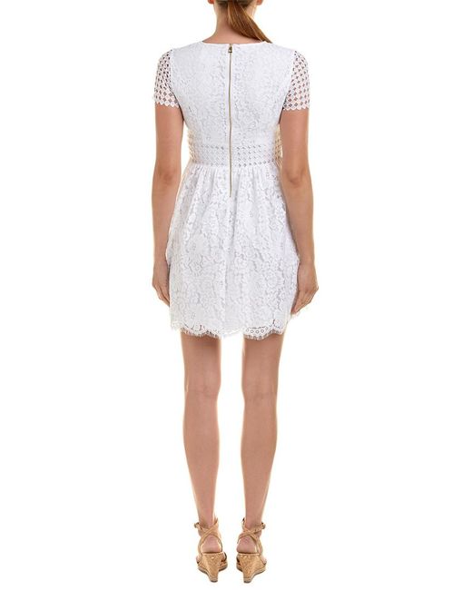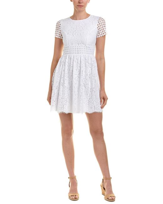 Color/pattern: white Approximately 34in from shoulder to hem Measurement was taken from a size 2 and may vary slightly by size Model is 5ft 10in Design details: lace design Centre back zipper Shell: 60% cotton, 40% nylon Lining: 100% polyester Machine wash Imported. Colour: white