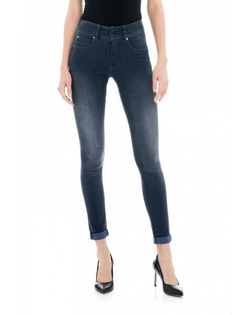 Salsa's best kept secret, these jeans are the most comfortable and flattering high-waist jeans. The tummy-tuck effect is subtle and effective. A fashionable look is guaranteed with the back pockets design and a light push-up effect. Push-in jeans are available in skinny or slim straight leg. This new wash is a slate blue with flattering fading to the front. The model is 178 cm and wears size 26. Colour: blue