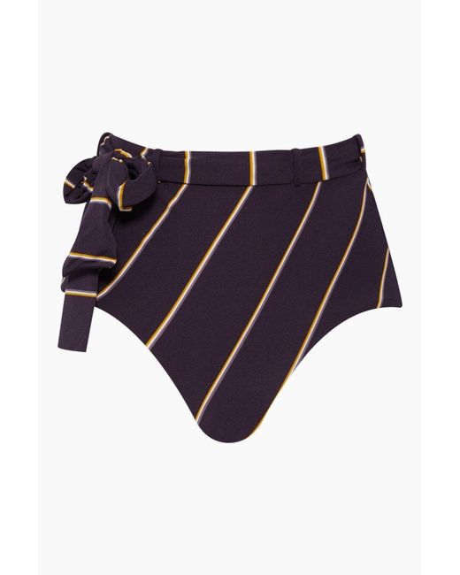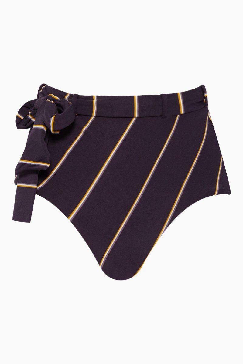 Women's Amulet Belted High Waist Bikini Bottom - Purple Taupe Stripe Print