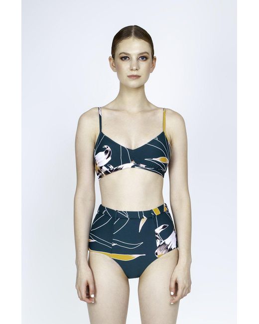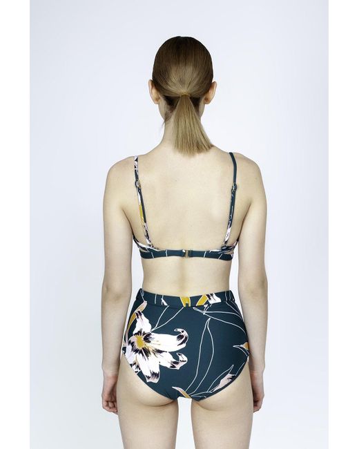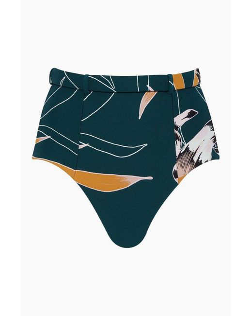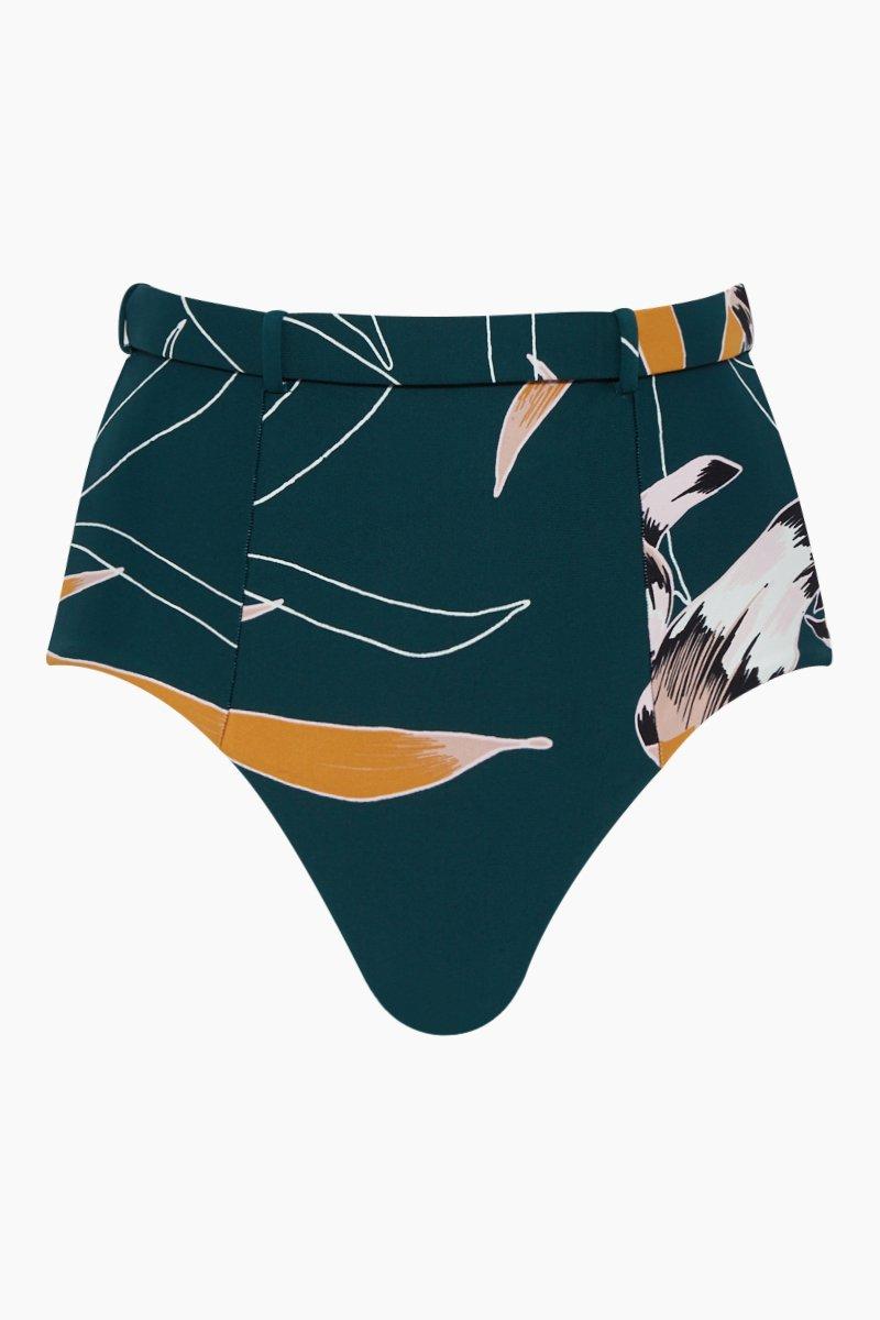 Women's Green Aralia Belted High Waist Bikini Bottom - Emerald Floral Print