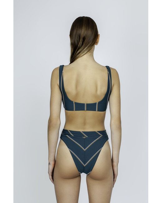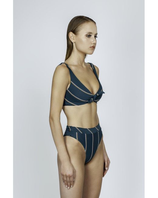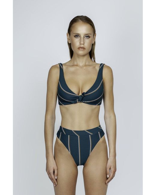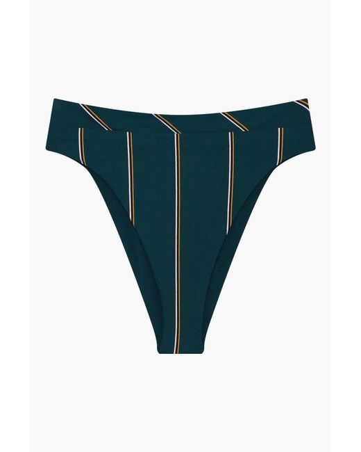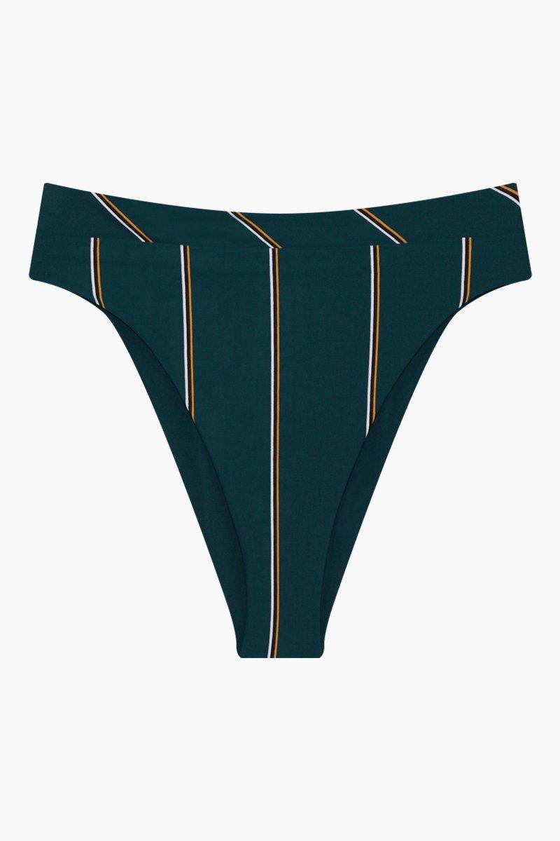 Women's Green Aralia High Cut Bikini Bottom - Emerald Stripe Print