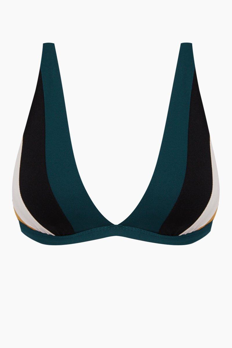 Women's Aralia Longline Triangle Bikini Top - Emerald/rose/black/gold Colour Block
