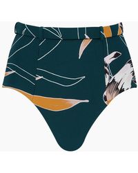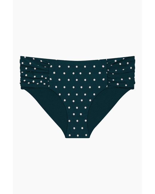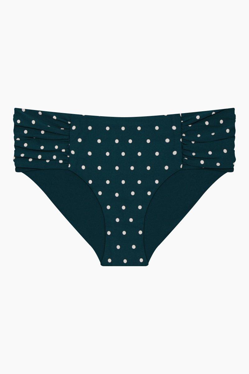 Women's Green Aralia Wide Set Retro Mid Rise Bikini Bottom - Emerald/rose Polka Dot Print