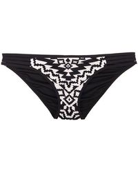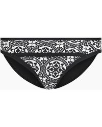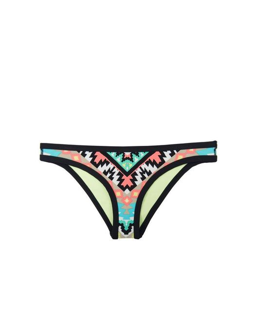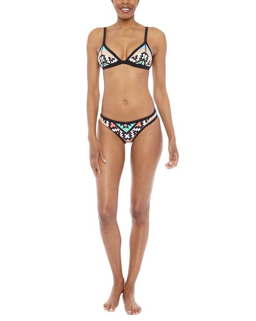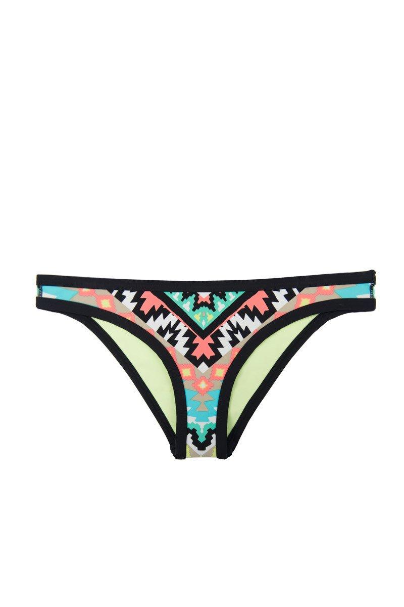 STYLE: Scuba hipster bikini bottom in multicolour geometric print. Made from Scuba-Luxe Neoprene, these bottoms have summery tones of aqua blue, coral pink, and white framed in a bold black border. Cool hipster bottoms provide moderate coverage to keep you secure while showing off your curves. Simple sides offer a smooth fit without adding bulk, making these bottoms easy to wear all day under your beachwear. Pair these bottoms with the Scuba Triangle Bikini Top in Kasbah Nectarine. CARE: Cold gentle machine wash separately or hand wash with lukewarm water using a mild detergent and dry in the shade. 90% Polyester, 10% Elastane. Colour: black