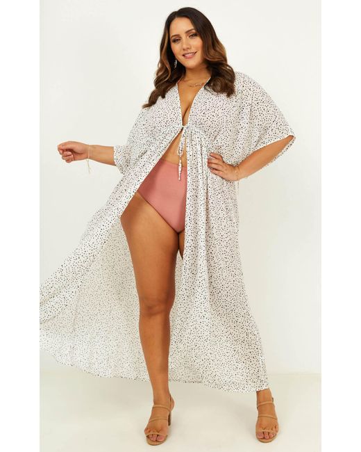 This is the beach dress that you need in your life! Our Time To Move Kimono features a self-tie closure in the front with short sleeves. This kimono will be your go to swimwear cover up all summer long. This will be super versatile addition to your wardrobe that can be worn not only to the beach but also to the beach club. Pair it perfectly with a cute pair of denim shorts, a crop top and some sandals for the ultimate beach to bar look! Made With 100% Viscose & Love. No Lining. Care For Me: Cold Hand Wash Only, Cool Iron, Do Not Soak, Do Not Tumble Dry, Wash Separately. Length: 120cm/ 47in. Tie Up Closure On The Front. No Pockets. Low Stretch. Leah is wearing size 8 AUS / 4 US / 8 UK / 36 EU. Leah's height is 170cm / 5ft 6in. Yasmine is wearing size 18 AUS / 14 US / 18 UK / 46 EU. Yasmine's height is 176cm / 5ft 9in. Colour: multicolour