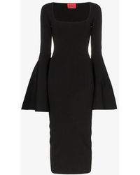 Solace London creates statement pieces defined by precision cuts and sophistication. The 'Serra' midi dress, in a striking green hue, is formed from heavy stretch knit fabric to sculpt the frame and features an extreme square neckline and exaggerated bell sleeves. The bodycon dress is free from zips to maintain a clean silhouette. 56% Viscose, 42% Polyamide, 2% ElastaneModel is 174cm/5'8.5 and wears a size UK 8. Colour: green