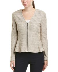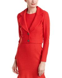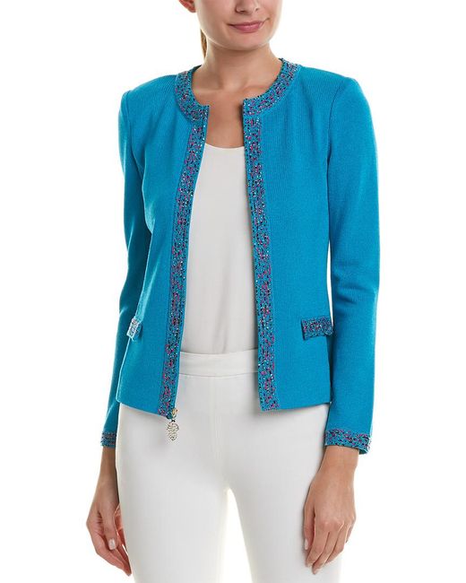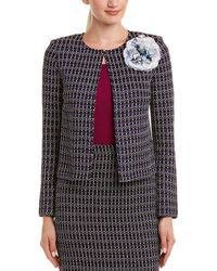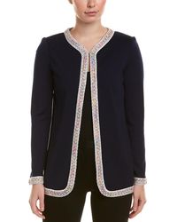 Color/pattern: lagoon multicolor. Approximately 22in from shoulder to hem. Measurement was taken from a size 2 and may vary slightly by size. Design details: tweed trim. Zipper closure. Self: 78% wool, 22% rayon. Contrast: 71% wool, 24% cotton, 4% rayon, 1% polyester. Dry clean only.
