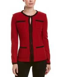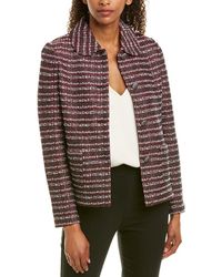 Color/pattern: petal. Approximately 27in from shoulder to hem. Measurement was taken from a size 2 and may vary slightly by size. Design details: mandarin collar, faux chest pockets, two front pockets, fringe trim. Button front. 78% wool, 22% rayon. Dry clean only.