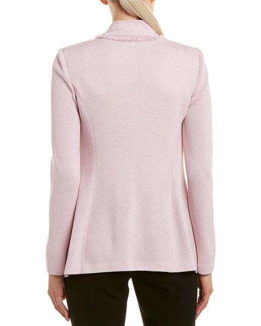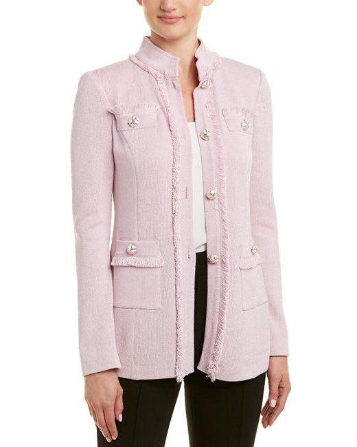 Color/pattern: petal Approximately 27in from shoulder to hem Measurement was taken from a size 2 and may vary slightly by size Design details: mandarin collar, faux chest pockets, two front pockets, fringe trim Button front 78% wool, 22% rayon Dry clean only Imported. Colour: pink