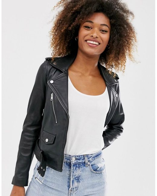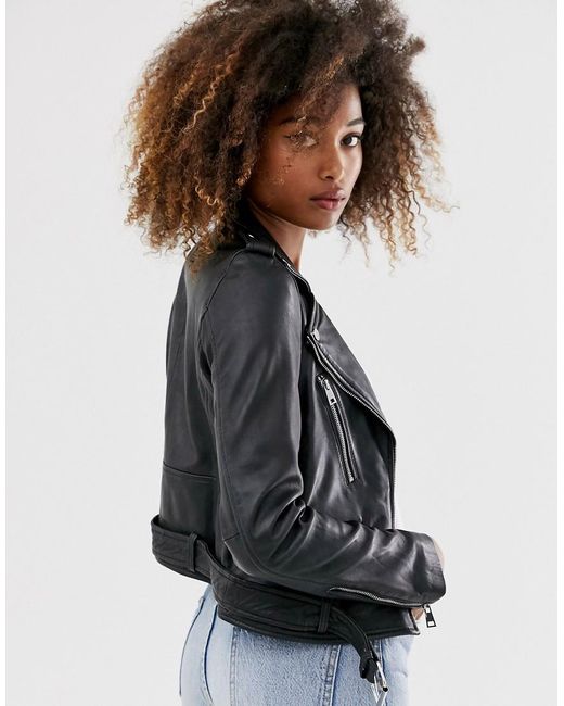 Women's Leather Biker Jacket In Black