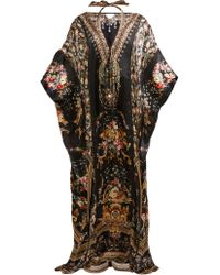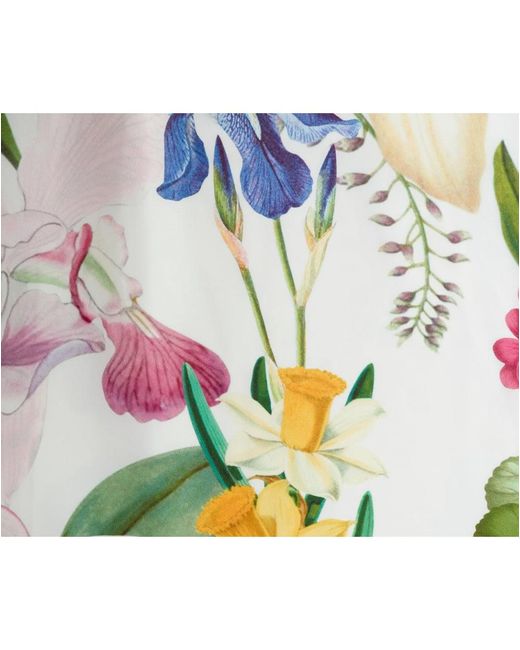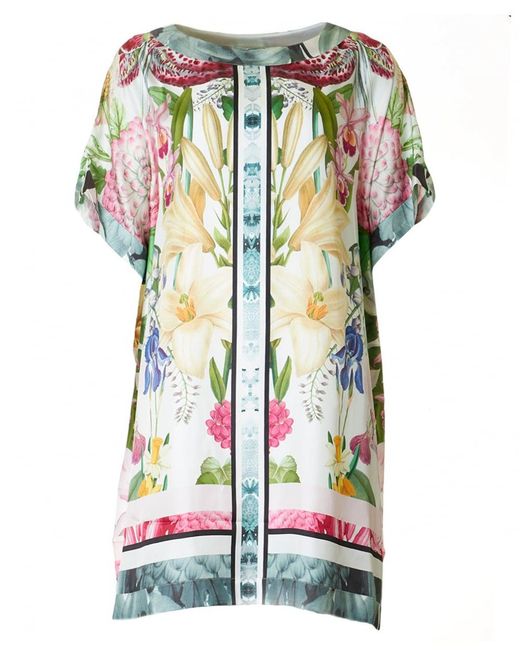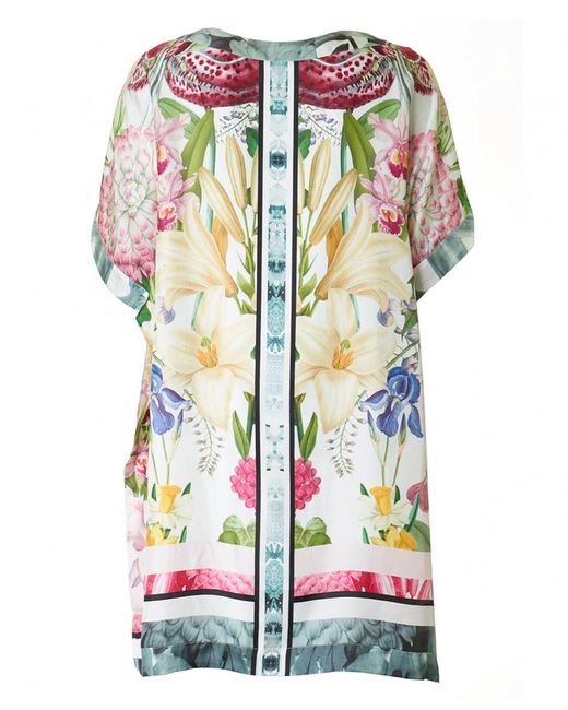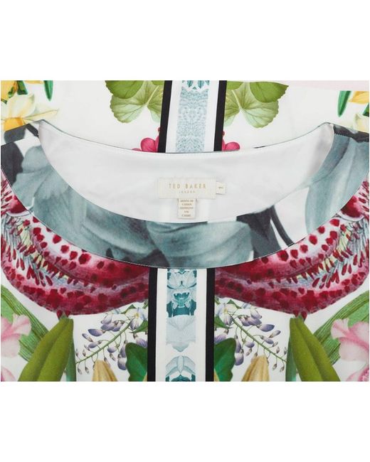 Inject some floral flair into your new season wardrobe with this kaftan dress from Ted Baker. Crafted from pure silk for a luxurious and lightweight feel, its simple shape beautifully skims the figure in a knee length style with a boat neckline and relaxed short sleeves. It features the brand's Encyclopedia floral print throughout and a contrasting border at the hem. Style this modern piece with strappy high heels for a striking silhouette that works for both day and evening. 100% mulberry silk. Encyclopedia print. Boat neck. Short sleeved. Contrasting border at hem. Fully lined. Knee length. Oversized fit. Dry clean only. Size photographed: 8. Pit to pit: 20". Colour: multicolour