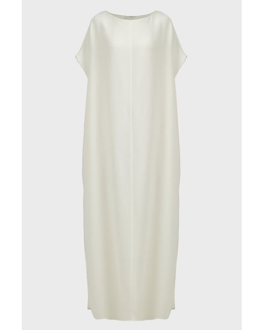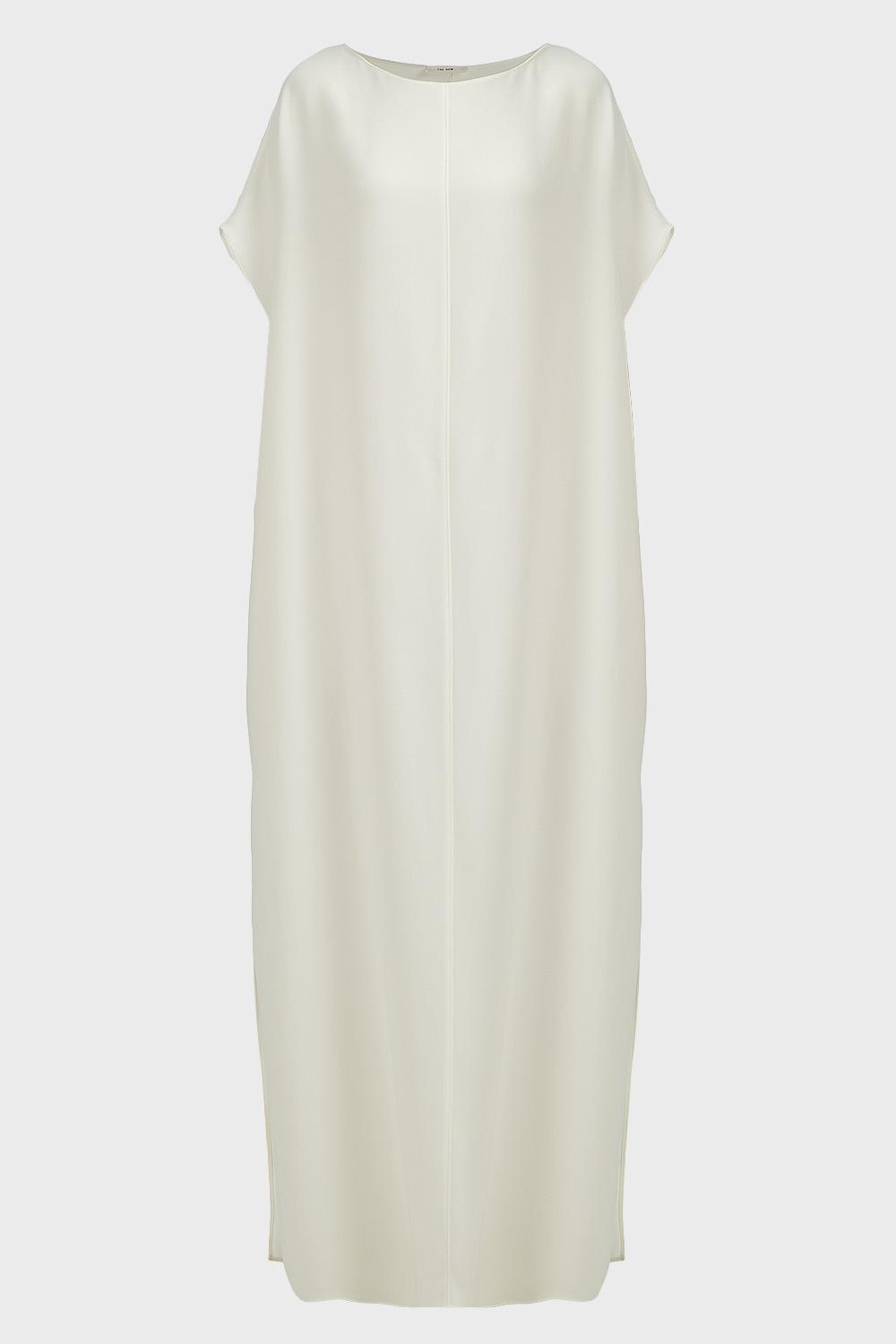 Add a touch of tonal minimalism to your edit with The Row's 'Dunika' kaftan. Crafted from stretch cady, it features a boat neckline and two high side splits. Wear this short sleeved piece with ankle boats for a laidback evening edit. WhiteSlips onMade in USAWe styled it with The Row boots, The Row bag, and Monica Vinader bracelets Our model is 178/5ft8 and is wearing UK 14/EU 42. Colour: white