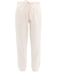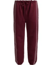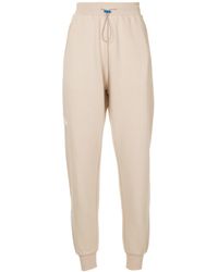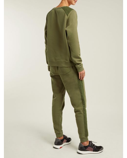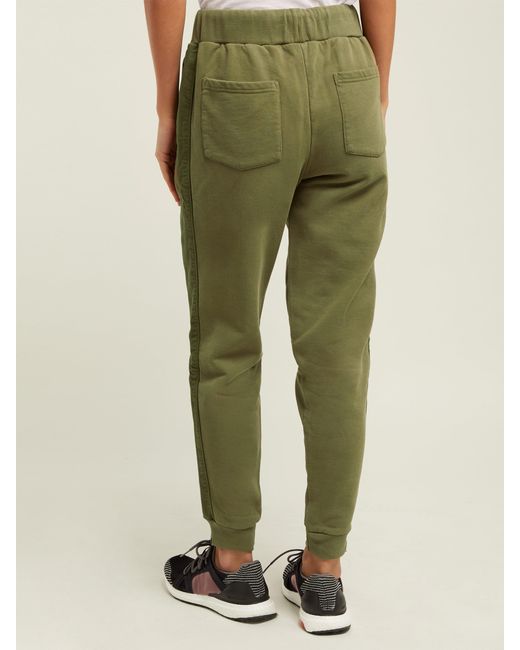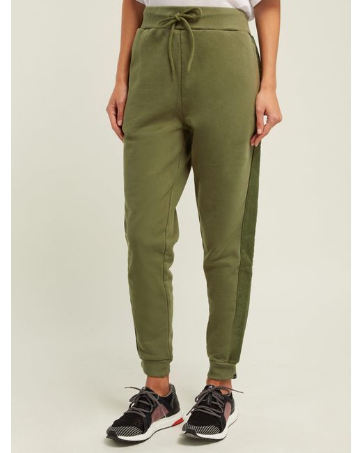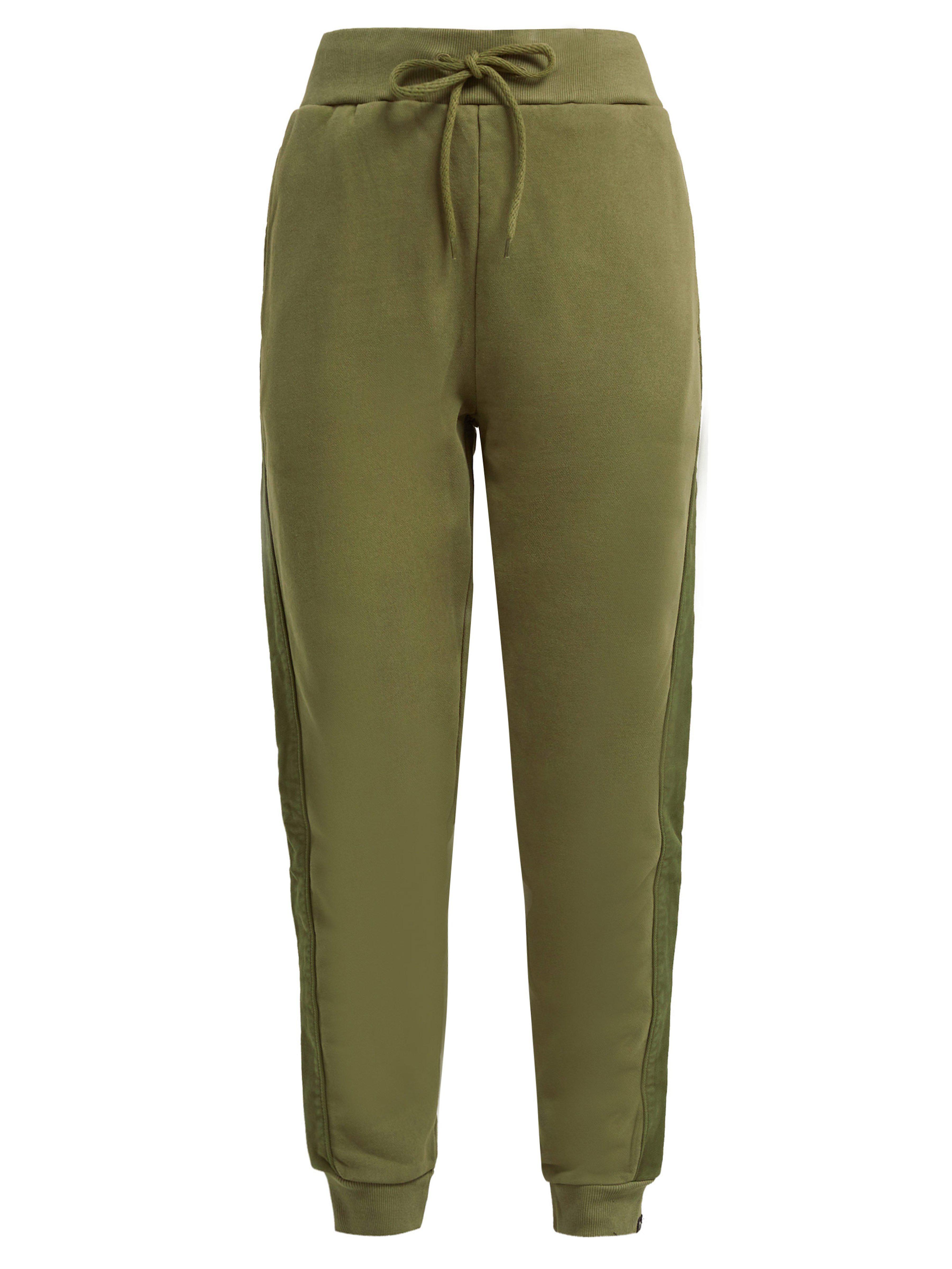 The tapered silhouette of The Upside's khaki-green cotton track trousers ensure they are a flattering activewear option. They have a drawstring waistband for a comfortable fit and feature contrasting twill side stripes, then are finished with a subtle black tab on the cuff – note the signature white arrow accent. Slip them on with the coordinating sweatshirt for a considered yet relaxed appearance. 100% Cotton. Colour: green
