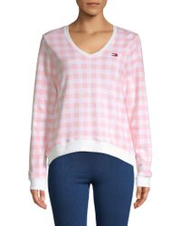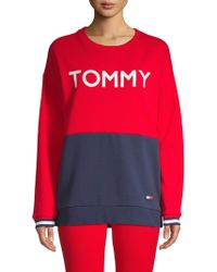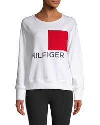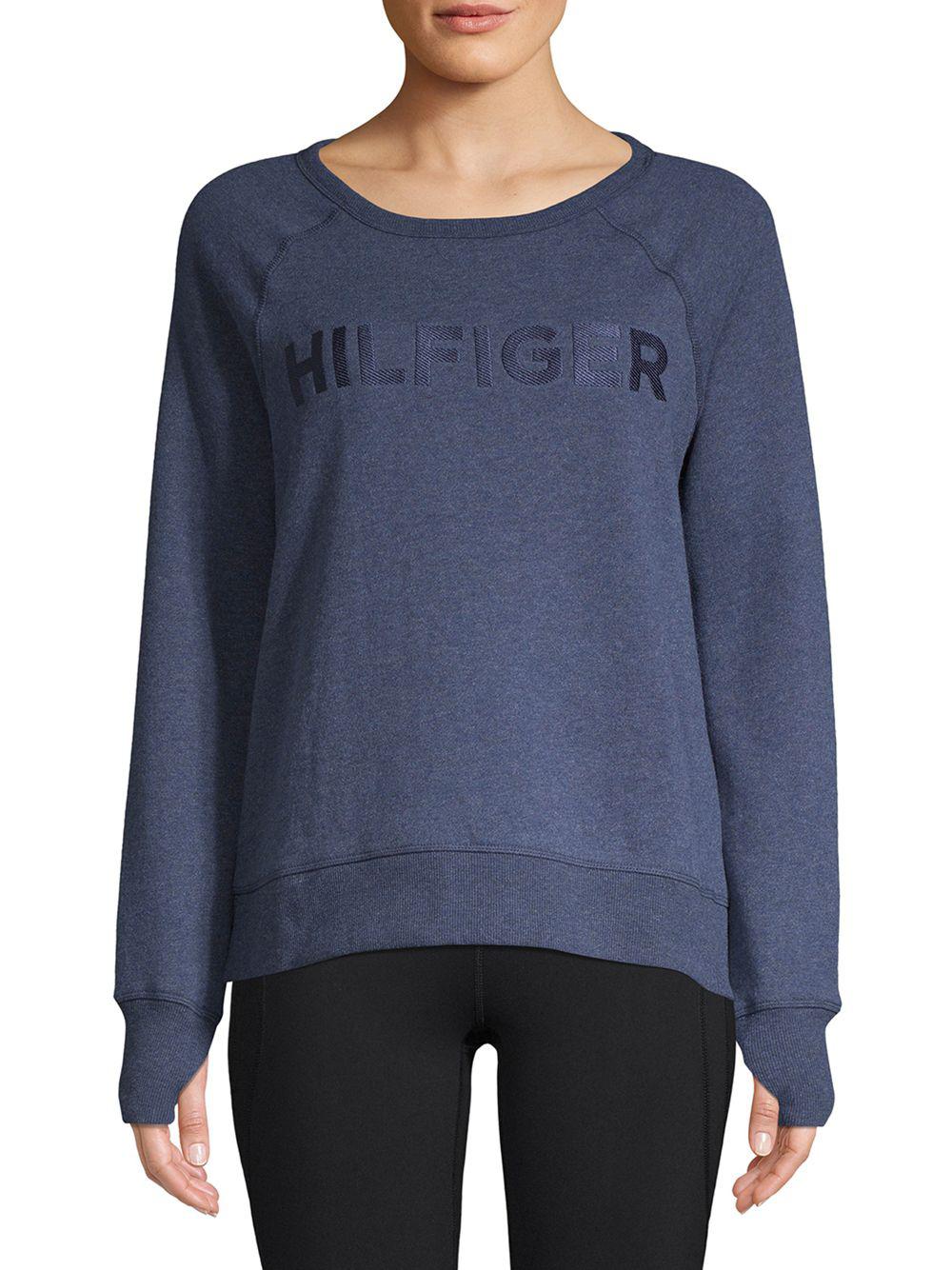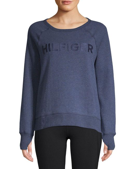 Cotton-blend jumper with signature logo on front. Roundneck. Long raglan sleeves with thumbholes. Rib-knit at neck, cuffs and hem. Pullover style. Cotton/polyester. Machine wash. SIZE & FIT. About 24.5" from shoulder to hem. Model shown is 5'10" (177cm) wearing US size Small. Colour: blue