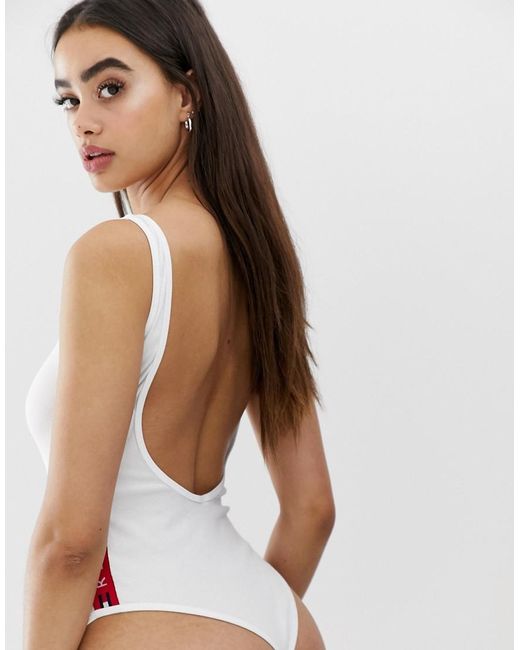 Body by Tommy Hilfiger, A go-to wardrobe addition, Scoop neck, Tommy Hilfiger branding, Low back, Brief cut, Close-cut bodycon fit. For our classic/cool American heritage fix, is there a brand more iconic than Tommy Hilfiger? Our logo-stamped collection here at ASOS includes just about everything ' think denim, sweats, loungewear and accessories. We've got its super-fresh fragrances, too ' Tommy Now and Tommy Girl Now are our faves for a zesty, all-day scent. Cotton/ denim/ elastane. Colour: white