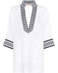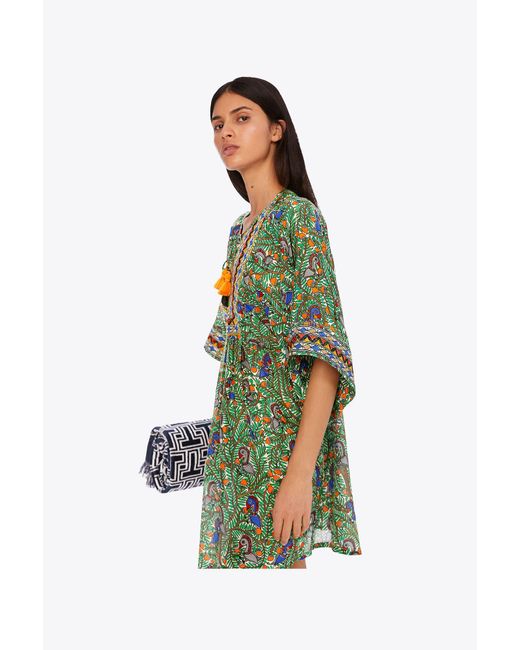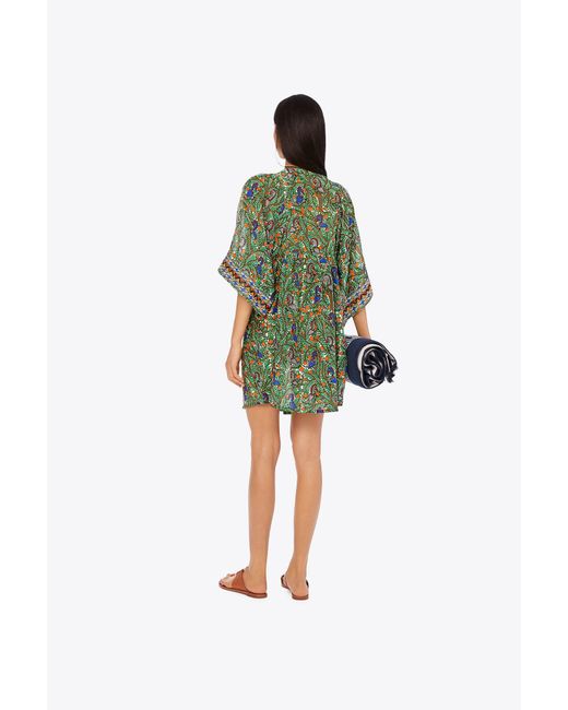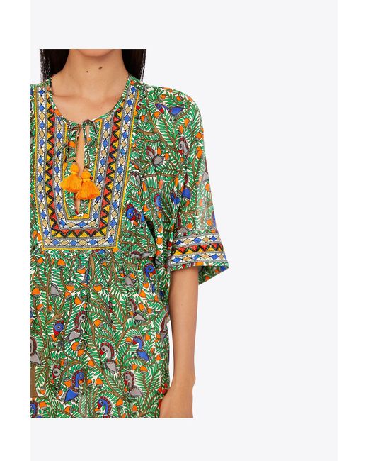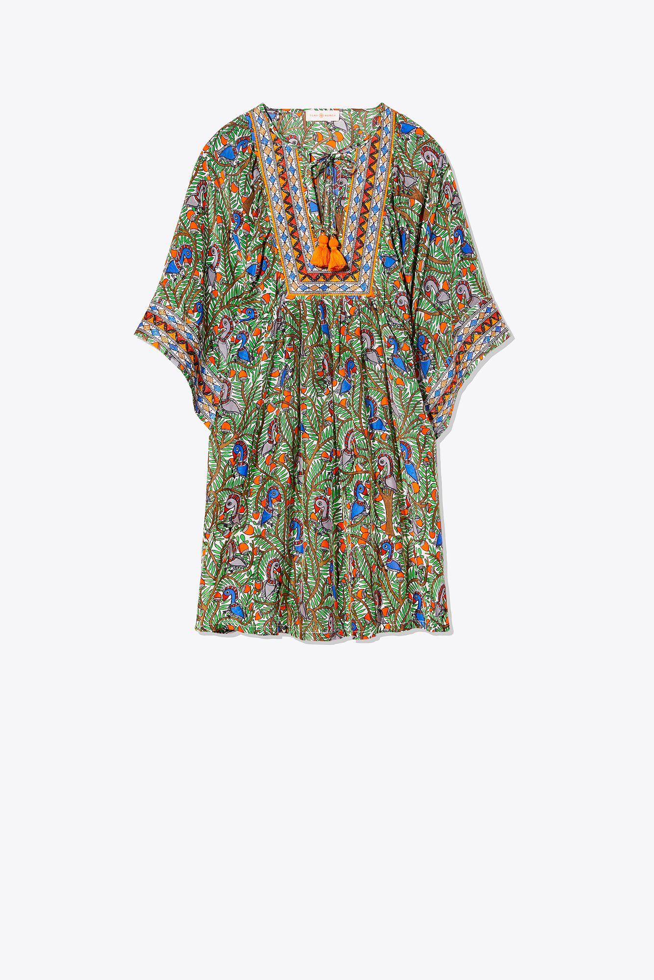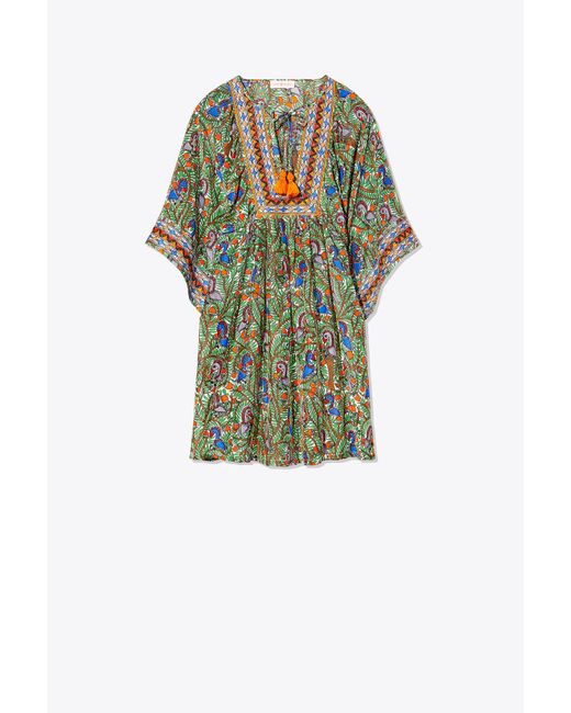 Directly from Tory Burch - Vibrant toucans find their perch on the light and floaty Embroidered Beach Tunic. A nod to exotic ports of call, it has a nipped-in waist balanced by billowy sleeves and beaded tassels for a charming finish. Tory Burch Official Site. Colour: green