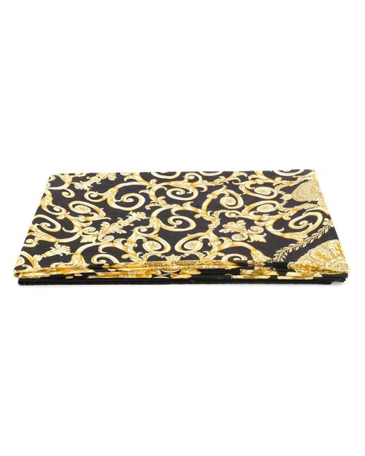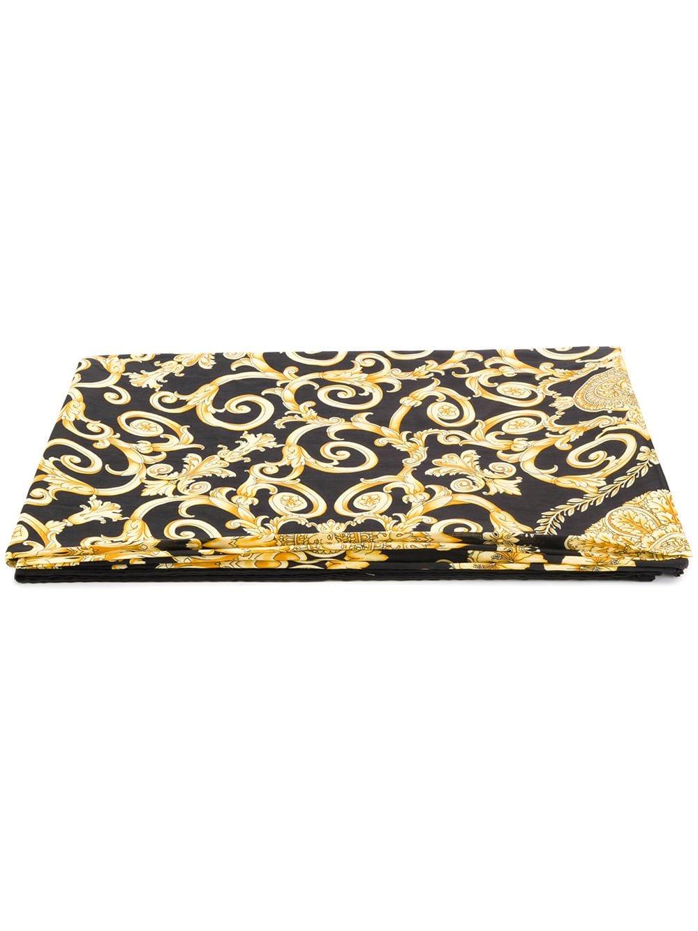 A pillar of luxury Italian fashion since 1978, Versace is celebrated for their glamorous details and impeccable craftsmanship which carries onto their accessory collections. This black cotton Gold Hibiscus print beach towel features an all-over Gold Hibiscus print, a rectangular shape and a lettered logo to the hem. Material:Cotton. Colour: black