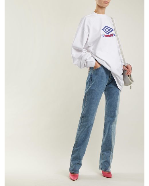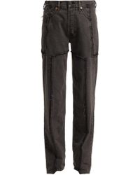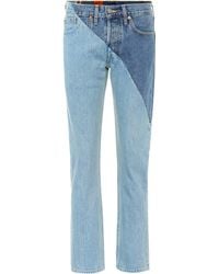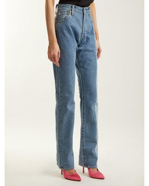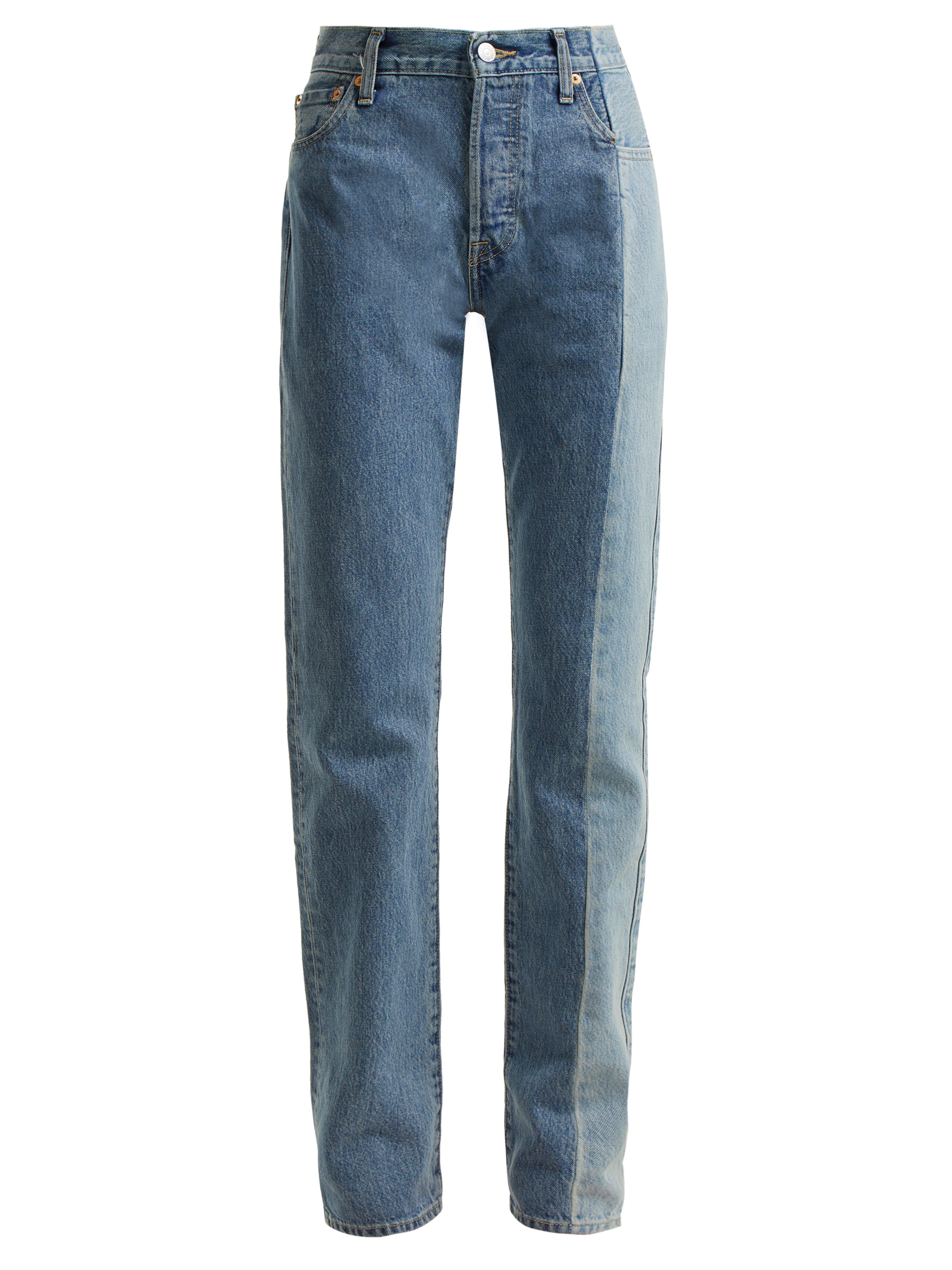 Vetements's collaboration with Levi's continues into SS18, with this reworked pair of vintage mid-blue jeans. The patchwork-like construction features contrasting hues across the side seams which is stitched alongside the original brown leather and suede tags. Style yours with an oversized jumper and sling-back court shoes. MAIN FABRIC:100%COTTON. Colour: blue