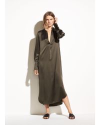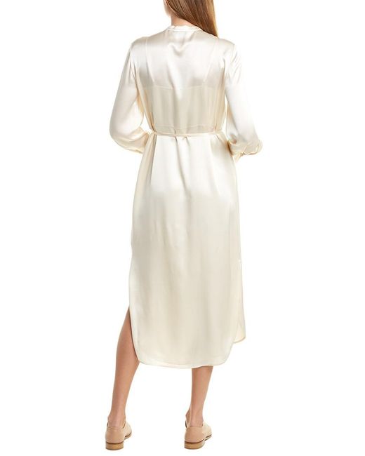 This item tends to run large (based on Member feedback). We recommend sizing down for your best fit. Color/pattern: chiffon. Approximately 46in from shoulder to hem. Measurement was taken from a size 4 and may vary slightly by size. Model is 5ft 10in. Design details: satin design, mock collar, V-neck, self-tie cord at waist, button cuffs, step hem with side slits at seams. Slip-on styling. 100% silk. Hand wash. Colour: pink