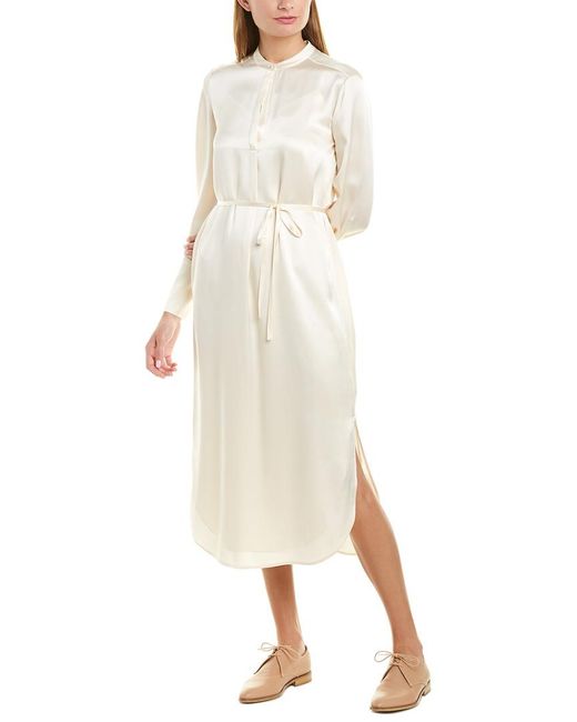 Women's Pink Band Collar Silk Shirtdress