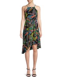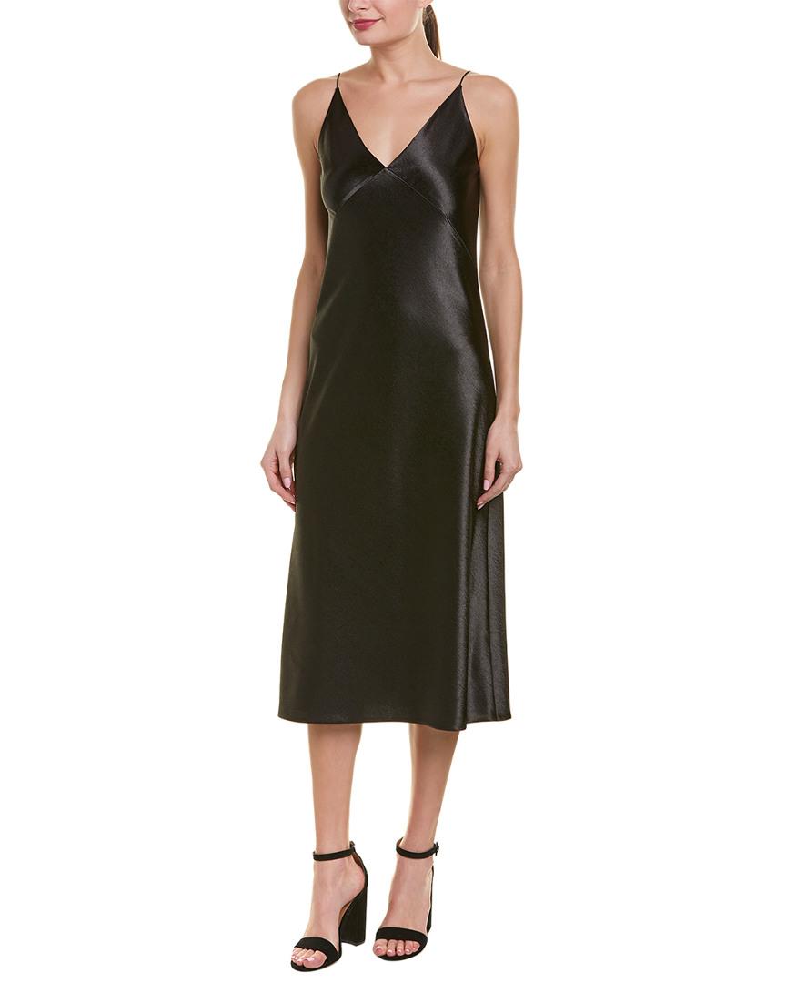This chic midi dress is finished with a V-back cut-out. V-neck. Spaghetti straps. Pullover style. Polyester. Machine wash. SIZE & FIT. About 48" from shoulder to hem. Model shown is 5'10" (177cm) and wearing US size Small. Colour: black